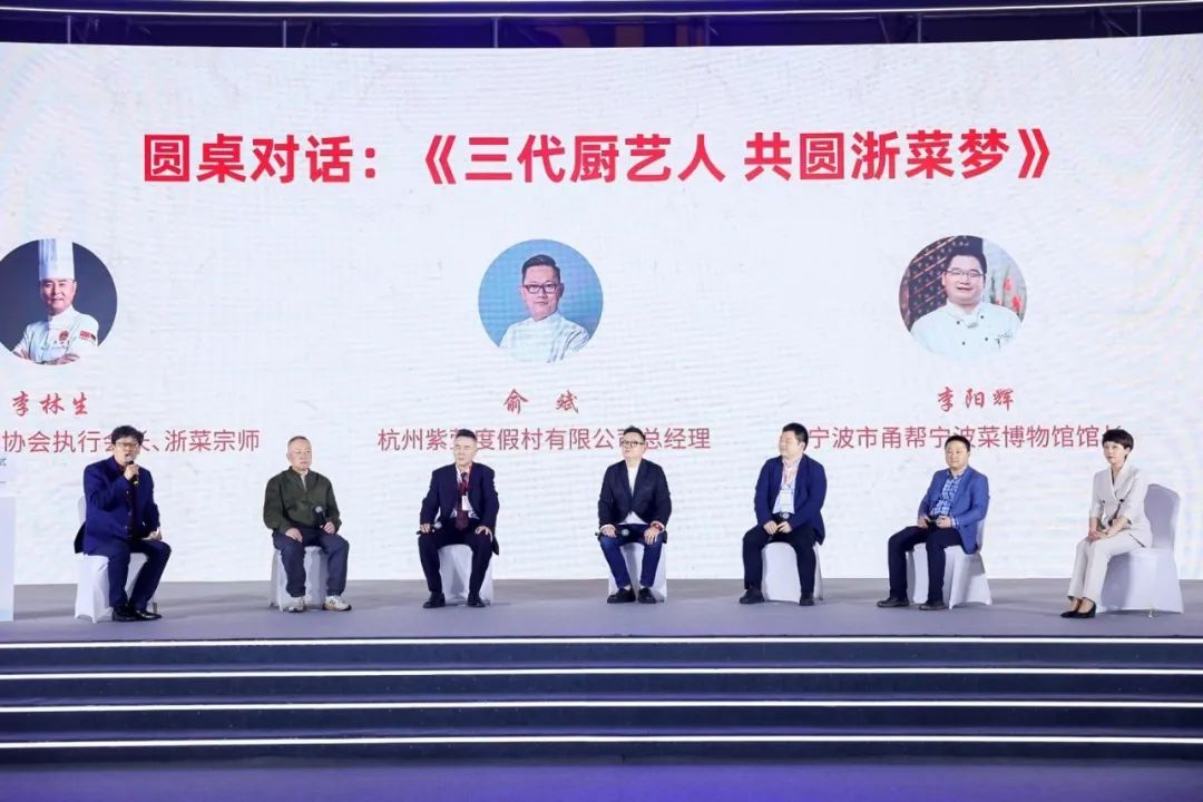 活动现场,由央视评论员、浙江省文化艺术智库专家俞柏鸿主持的圆桌对话《三代厨人 共圆浙菜梦》格外引人关注。浙菜宗师胡忠英、李林生,杭州紫萱度假村有限公司总经理俞斌,宁波市甬帮宁波菜博物馆馆长李阳辉,浙江舜泉酒店投资管理有限公司总经理谷平,杭州王元兴餐饮管理有限公司总经理郭燕燕等六位行业专家大咖,现场展开了一场妙趣横生的圆桌对话,从浙菜的历史谈到未来,三代厨艺人,共圆浙菜梦。开幕式上,还举行了浙江省餐饮行业先进表彰仪式,与会领导嘉宾分别对获奖者进行了表彰授牌。同时,对中国浙菜文化海外传播使者进行授旗,并对2022年获得“国家五钻级酒家”餐饮企业进行授牌。