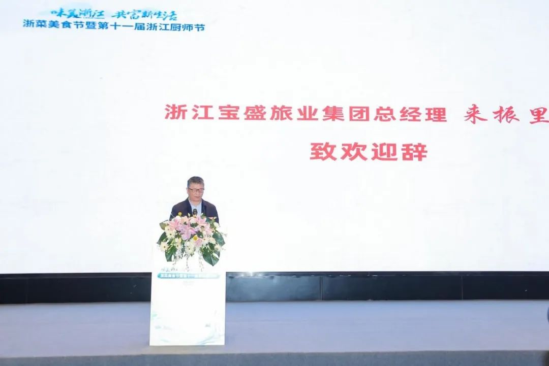 开幕式结束后,与会领导嘉宾现场观摩“味美浙江”餐饮消费欢乐季和浙菜美食节暨第十一届浙江厨师节主题餐饮展区。同时举行了“味美浙江·共富家宴”浙菜品鉴会。本次品鉴会的承办方浙江宝盛旅业集团总经理来振里在会上致欢迎辞。随着一道道美食“纷至沓来”,嘉宾们体验到浙菜的浓厚魅力。