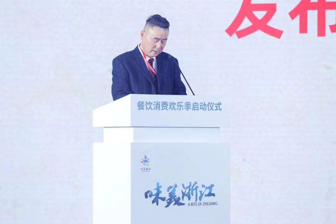 浙江省商务厅党组成员、总经济师朱军在致辞中表示,今年是中国“消费提振年”,省商务厅认真贯彻党的二十大精神,落实党中央和省委省政府关于提振消费信心、稳定消费预期、推动消费全面复苏的决策部署,大力开展促消费活动。在刚刚启动的“味美浙江”餐饮消费欢乐季活动上,省委易炼红书记出席并巡馆,提出要做好“餐饮为民”“餐饮乐民”“餐饮富民”三篇文章,打造更响亮的浙菜品牌,真正让“浙江美如画、浙菜香天下”。他希望广大餐饮企业家、从业者潜心研究烹饪技艺,挖掘好食材,推出好菜品,让精品成为经典,希望餐饮行业协会通过举办浙菜美食节、浙江厨师节、餐饮行业赛事等品牌活动,以最兴旺最温馨的“人间烟火味”,营造“看在浙江、吃在浙江、购物在浙江”的浓厚氛围,更好地传承浙菜文化,持续引领餐饮消费升级,推动浙江餐饮业持续高质量发展。