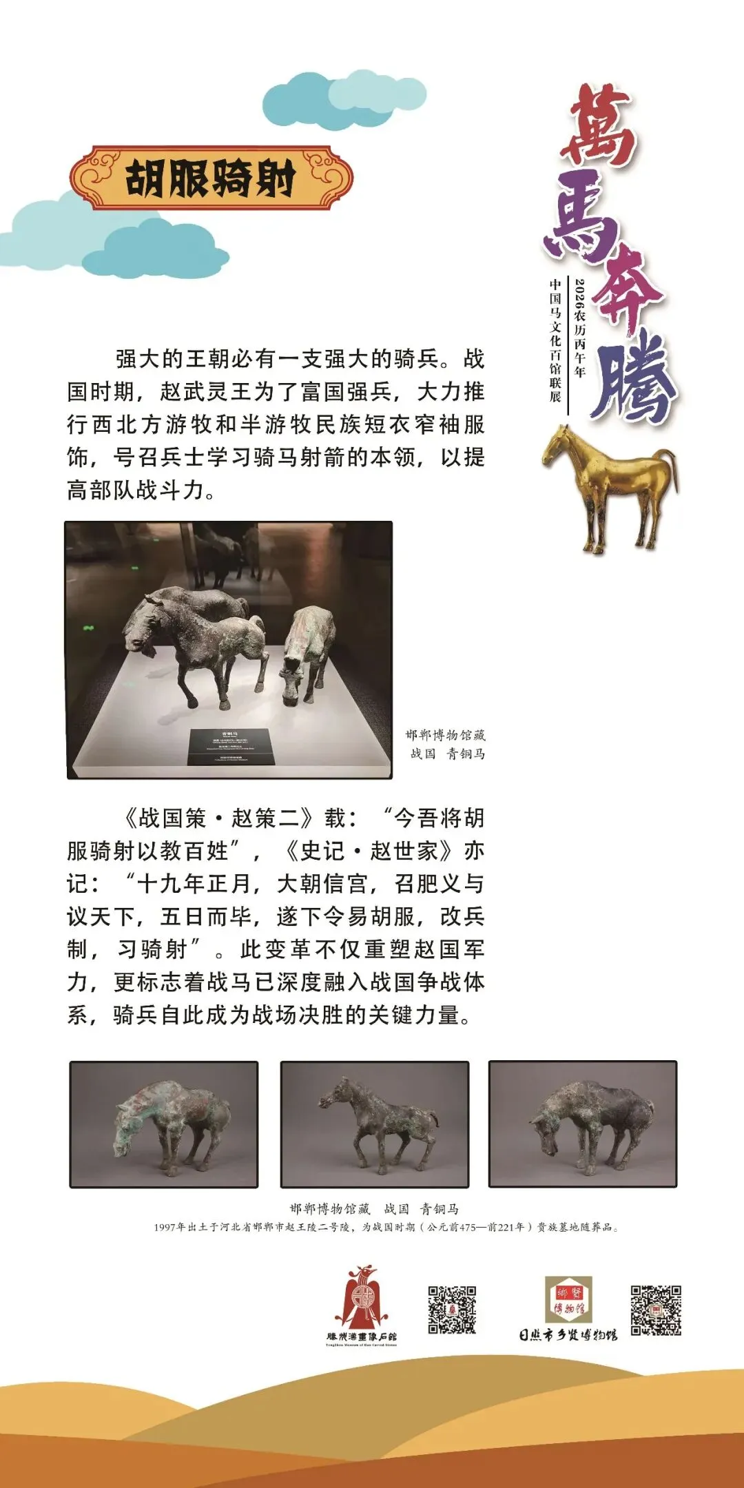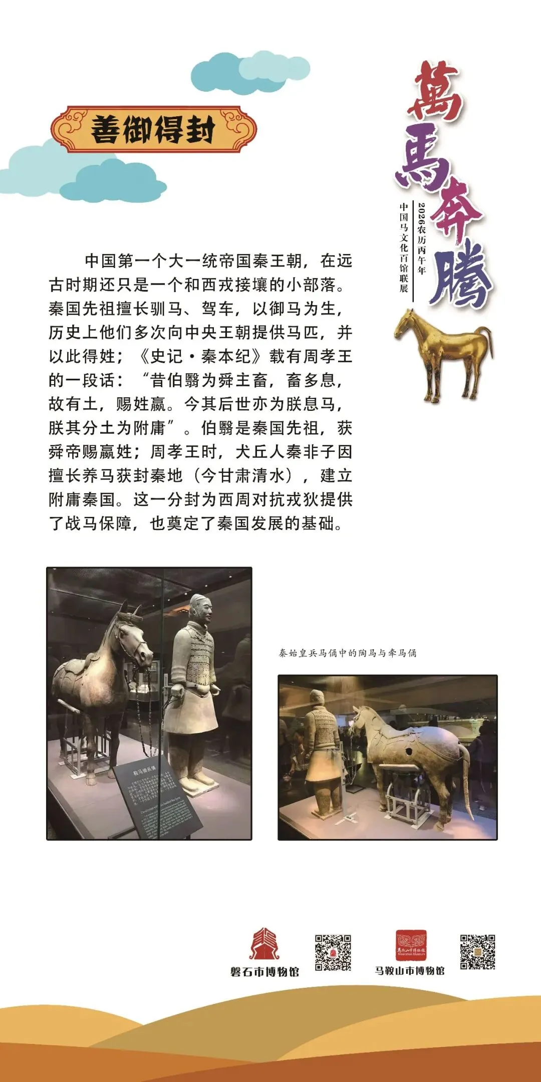 《万马奔腾——2026农历丙午年中国马文化百馆联展》是在马年到来之际,为广大观众送上的新春特展,该展览甄选历代马主题文物艺术珍品,以“万马奔腾”为魂,串联起跨越千年的文化记忆与艺术匠心,为广大市民朋友献上一场新春文化盛宴。展览采用线上线下相结合的方式,线下展览已于2026年2月15日在沁阳市博物馆开展。线上展览将分为五期进行推送,今天推送第二期,感谢各位观众对该展览持续关注和支持。沁阳市博物馆恭祝大家新年快乐!马年大吉!马到功成!