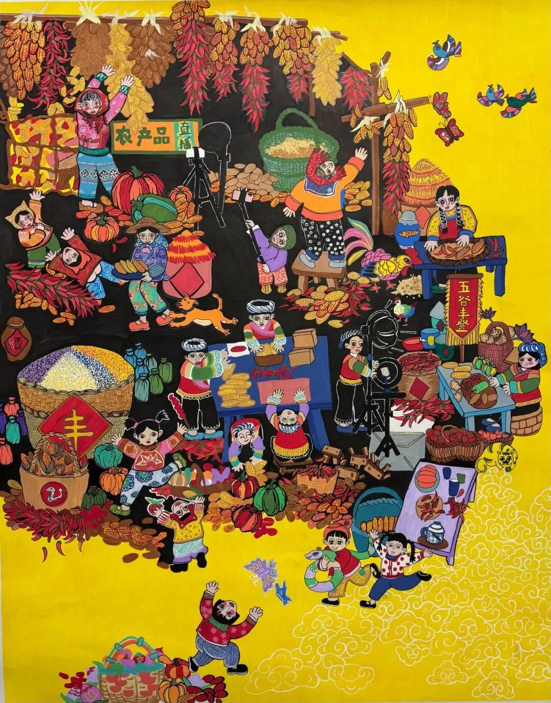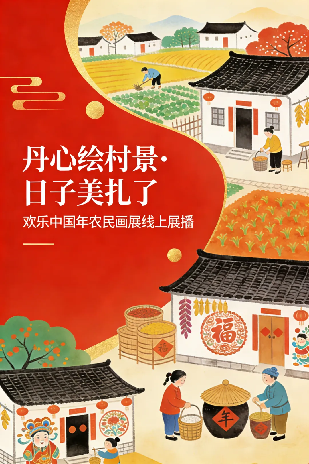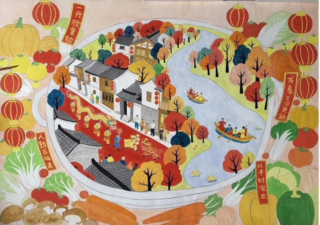 春归沃野,墨润乡心,年味浸丹青,匠心暖山河。“丹心绘村景·日子美扎了”欢乐中国年全国农民画展,携一缕乡土诗意赴新春之约,一纸征稿汇八方赤诚,全国农民画创作者以笔为媒、以色为语,将对故土的眷恋、生活的热忱与新春的期许,凝于尺幅之间。遴选而出的每一幅作品,皆是烟火人间的温柔描摹,藏着乡村的烟火与欢喜,载着最朴素的美好与真挚的祈愿。