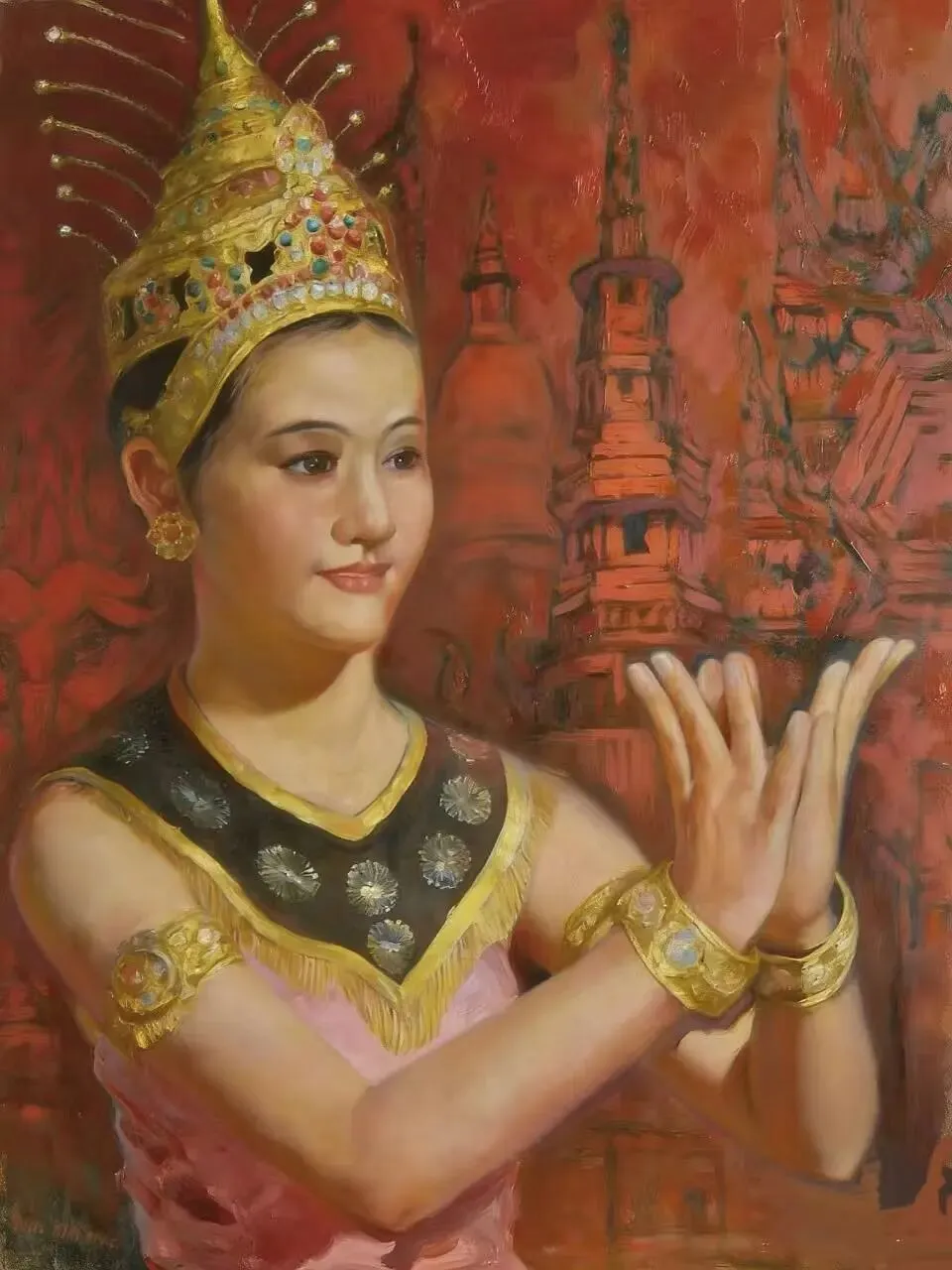 泰国:美丽的年轻舞者 油画