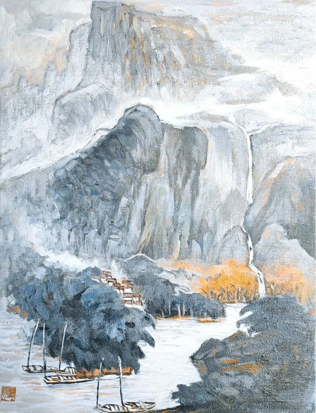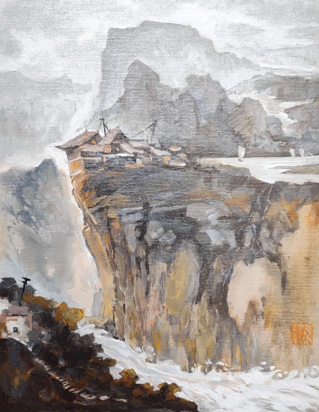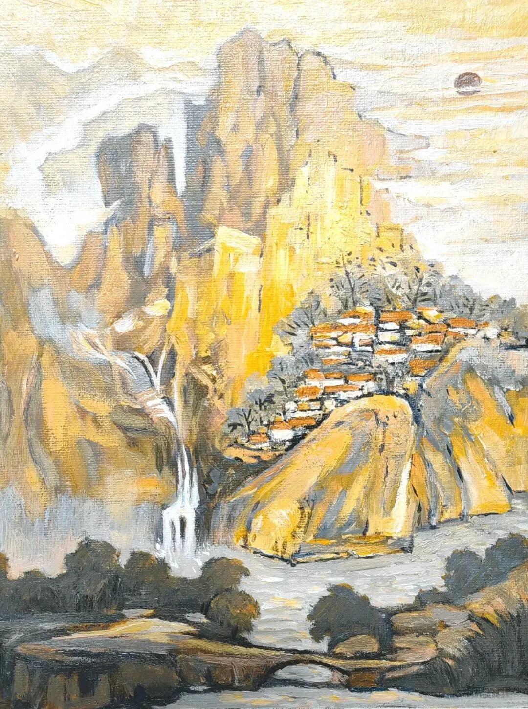 云间人家 丙烯油画