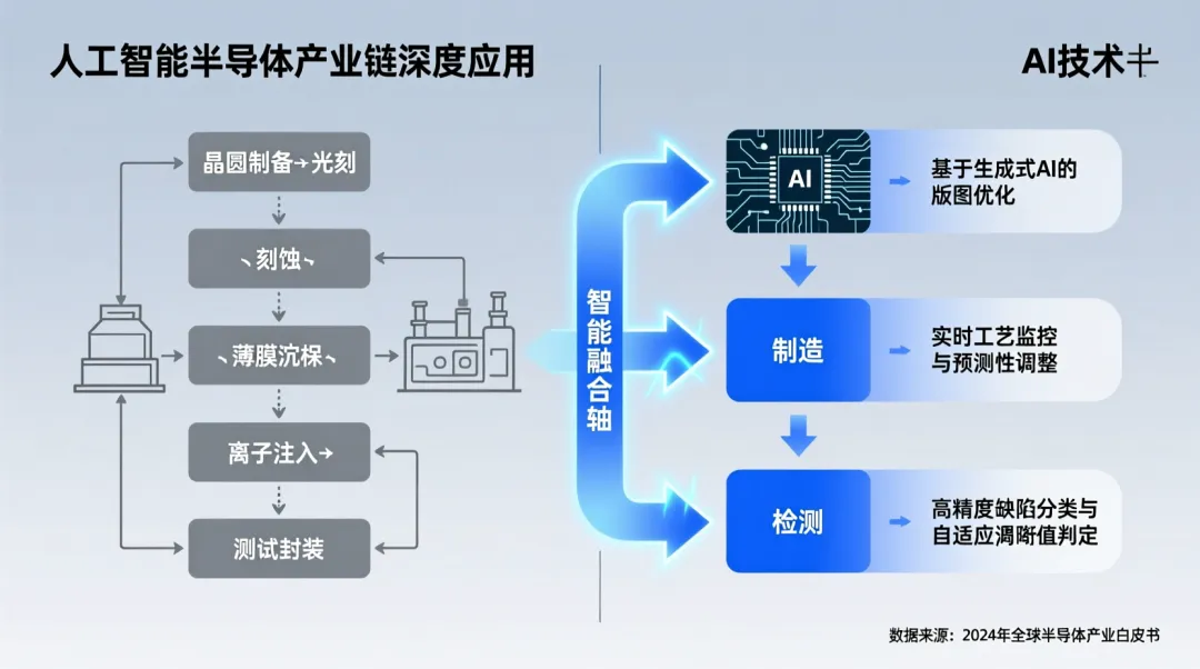 通过这种AI赋能的检测优化,企业在六个月内将面板良率提升了3个百分点——这在微利竞争的显示行业意味着巨大的成本优势。类似的原理也应用于半导体制造:AI算法可以优化光刻工艺参数、预测设备维护周期、甚至辅助芯片设计布线。