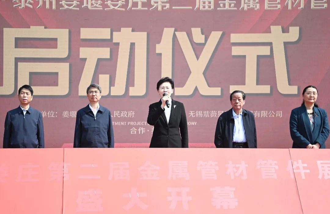 钱娟宣布2023中国·泰州姜堰娄庄第二届金属管材管件展销会开幕。