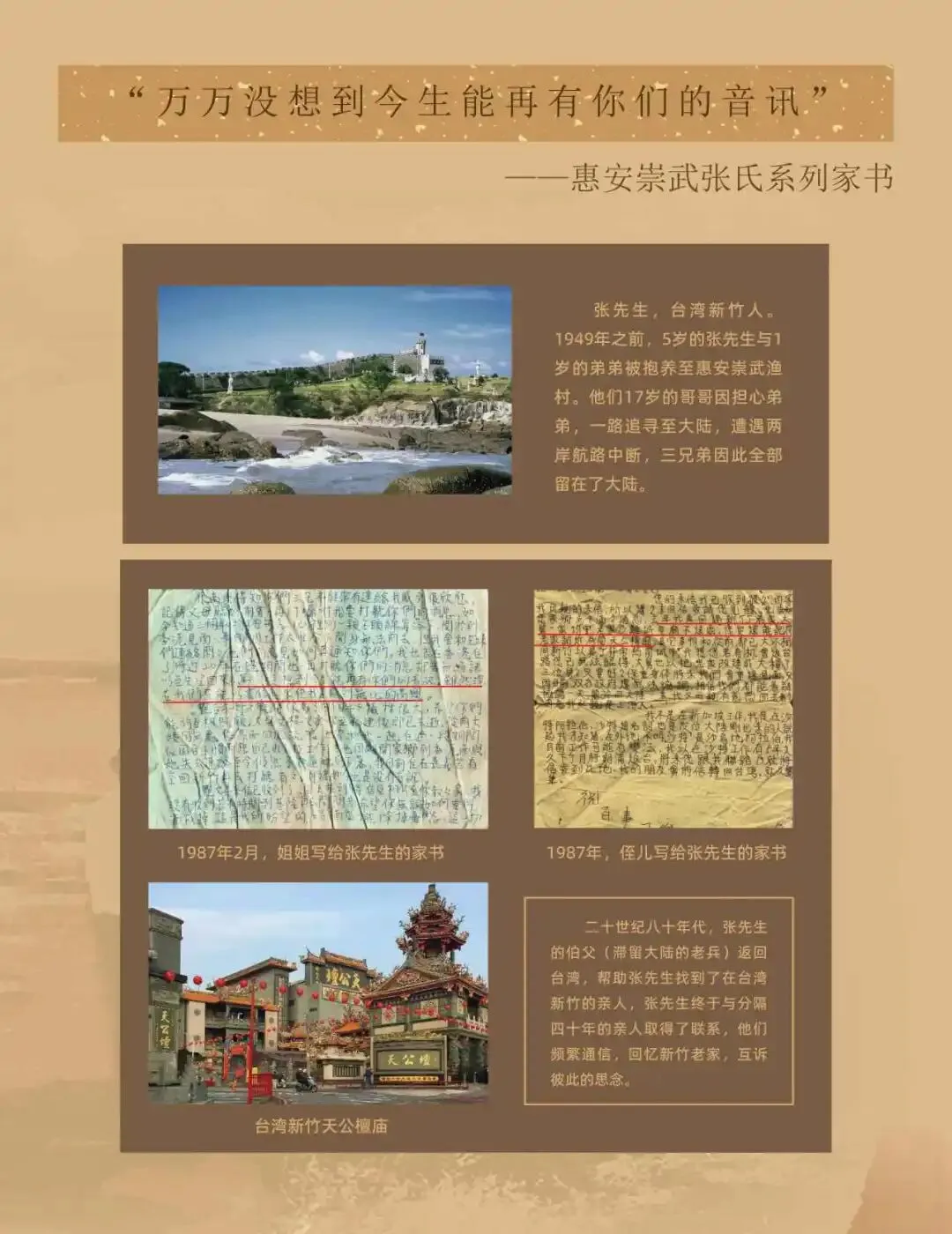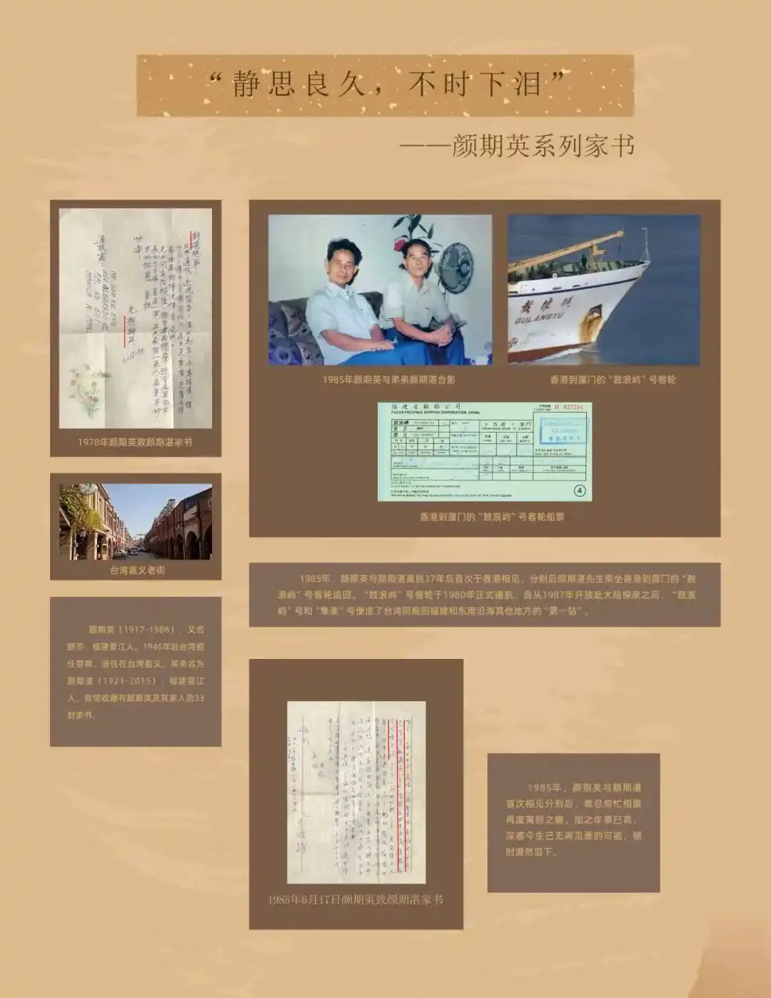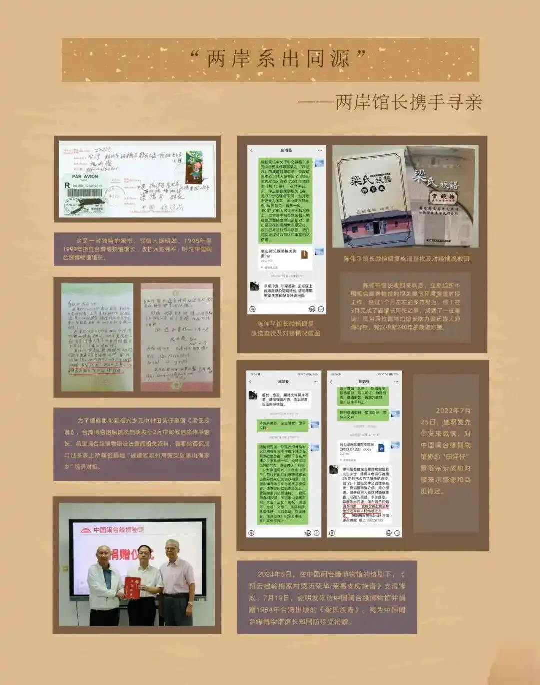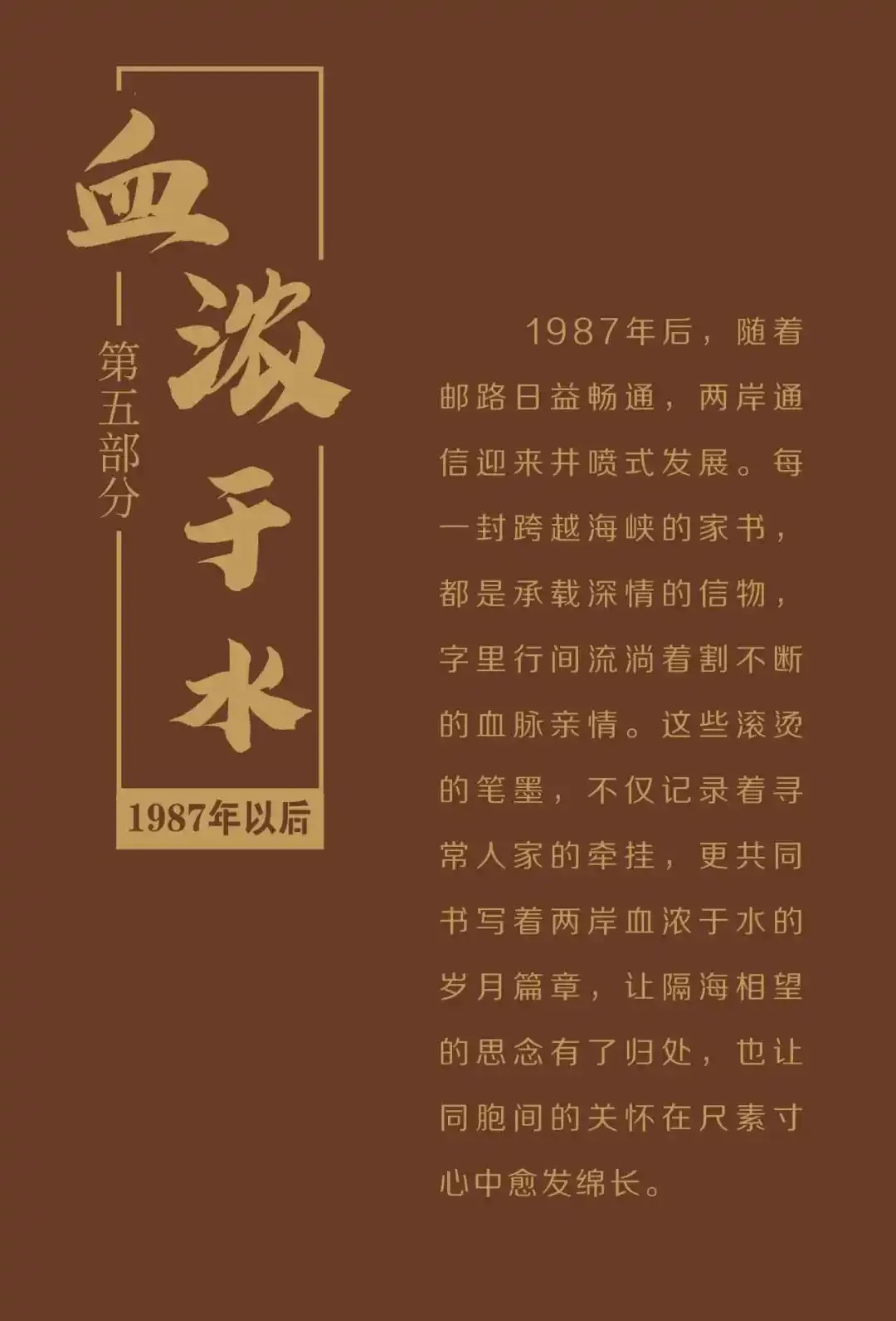 从隔海相望的思念,到邮路畅联后的滚烫笔墨——两岸家书记录着离散与重逢,也铭刻着血脉深处永不磨灭的牵挂。每一封泛黄信笺,都是寻常人家的悲欢,更是两岸同根同源的时代注脚。