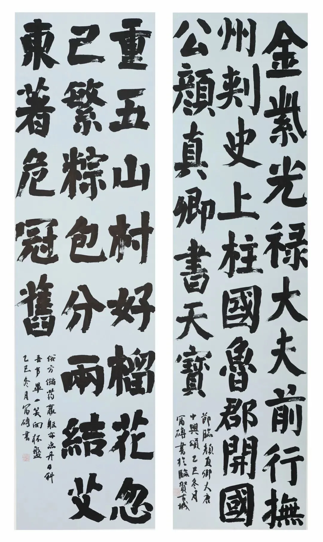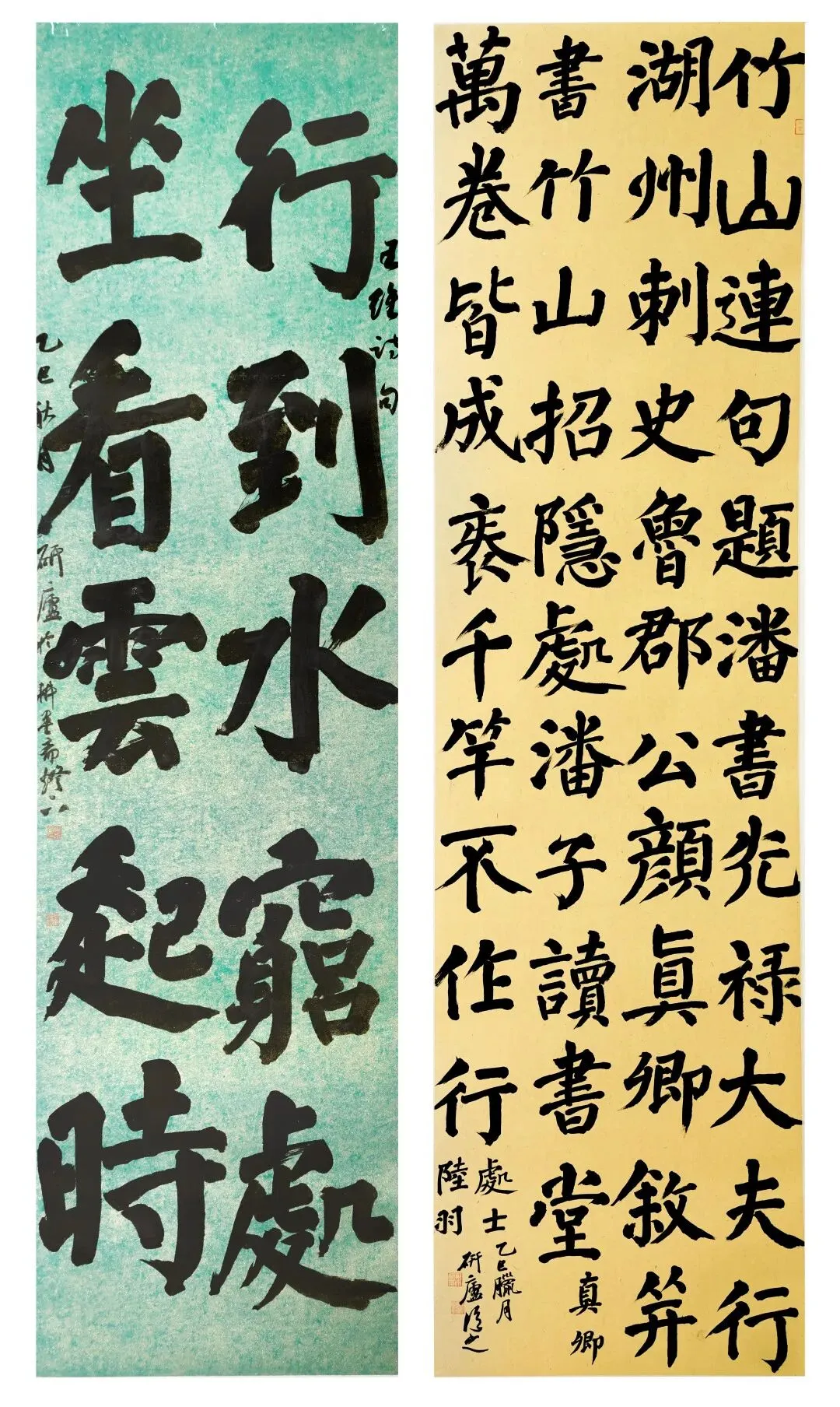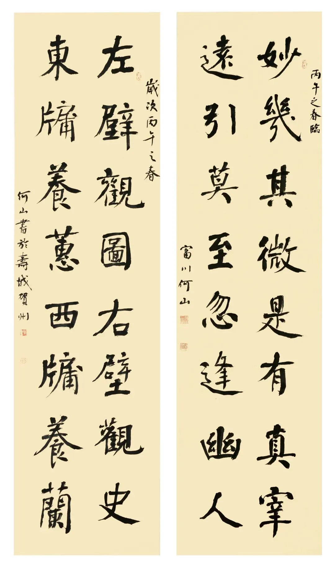 作品:节临《颜真卿书竹山堂连句》 创《行到•坐看》对联