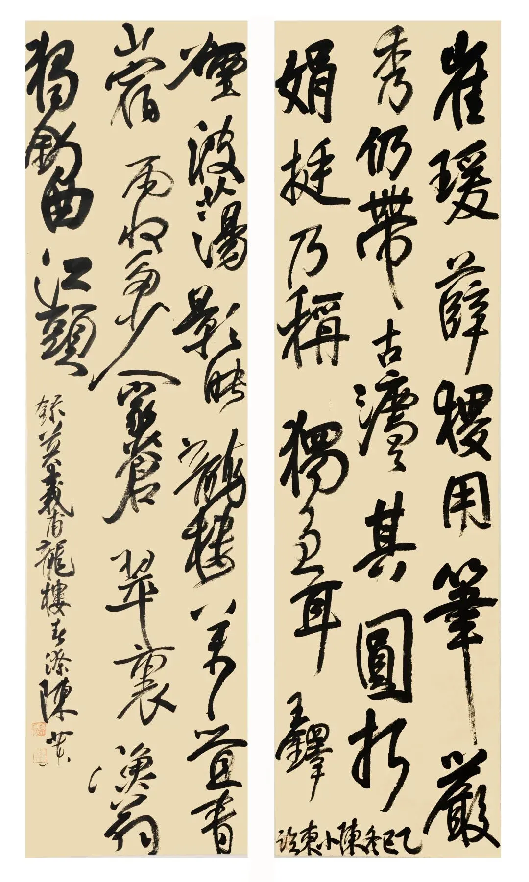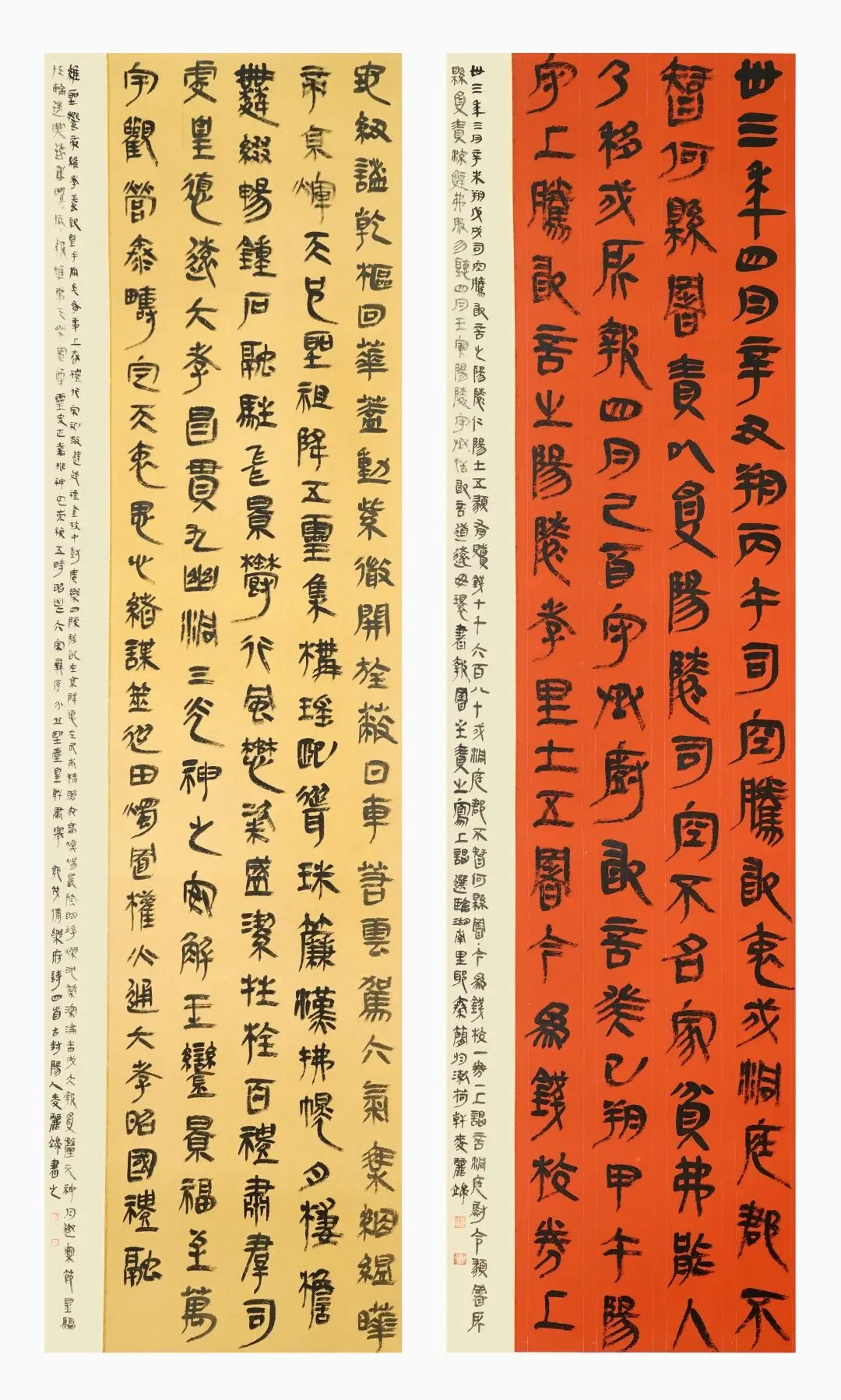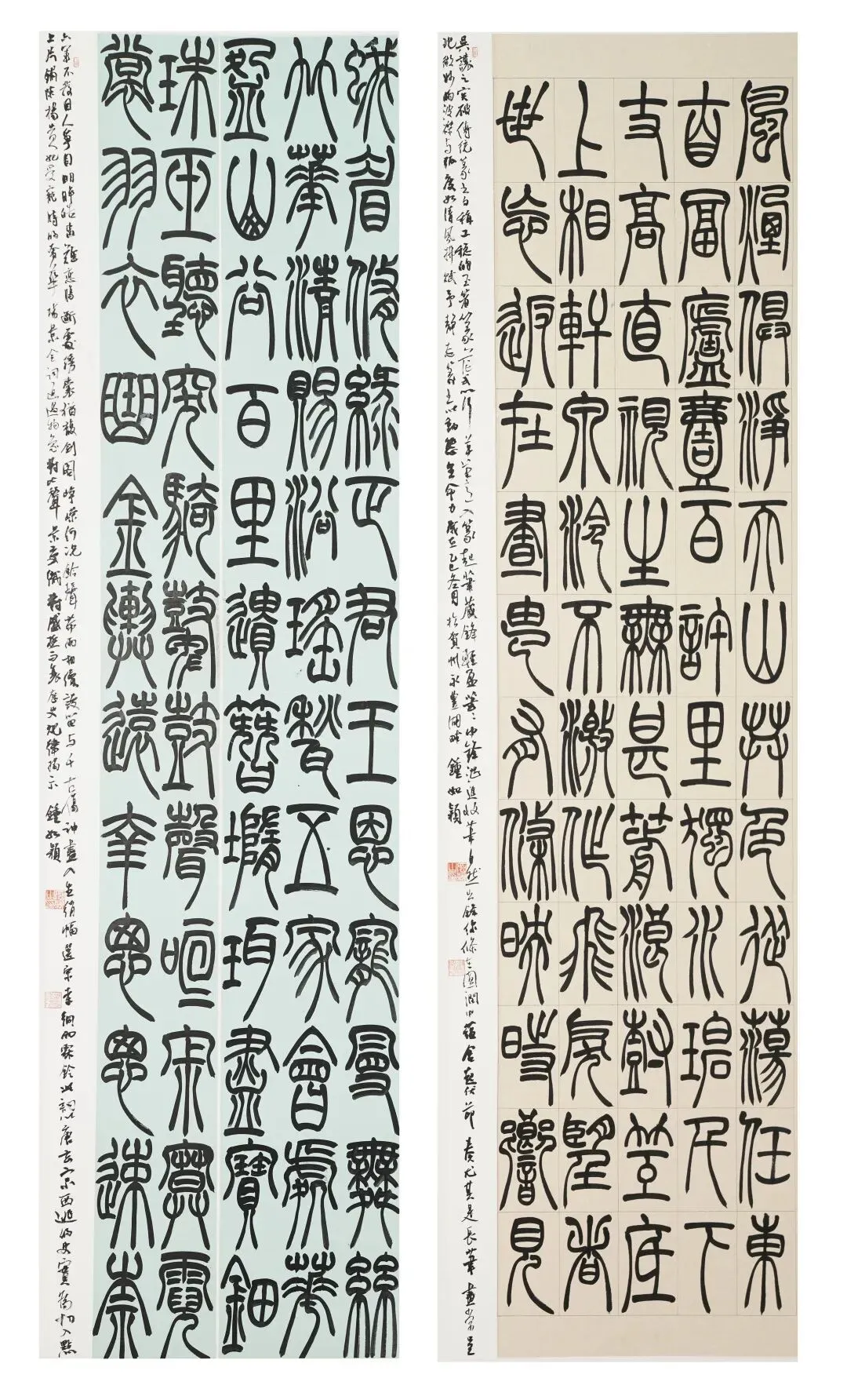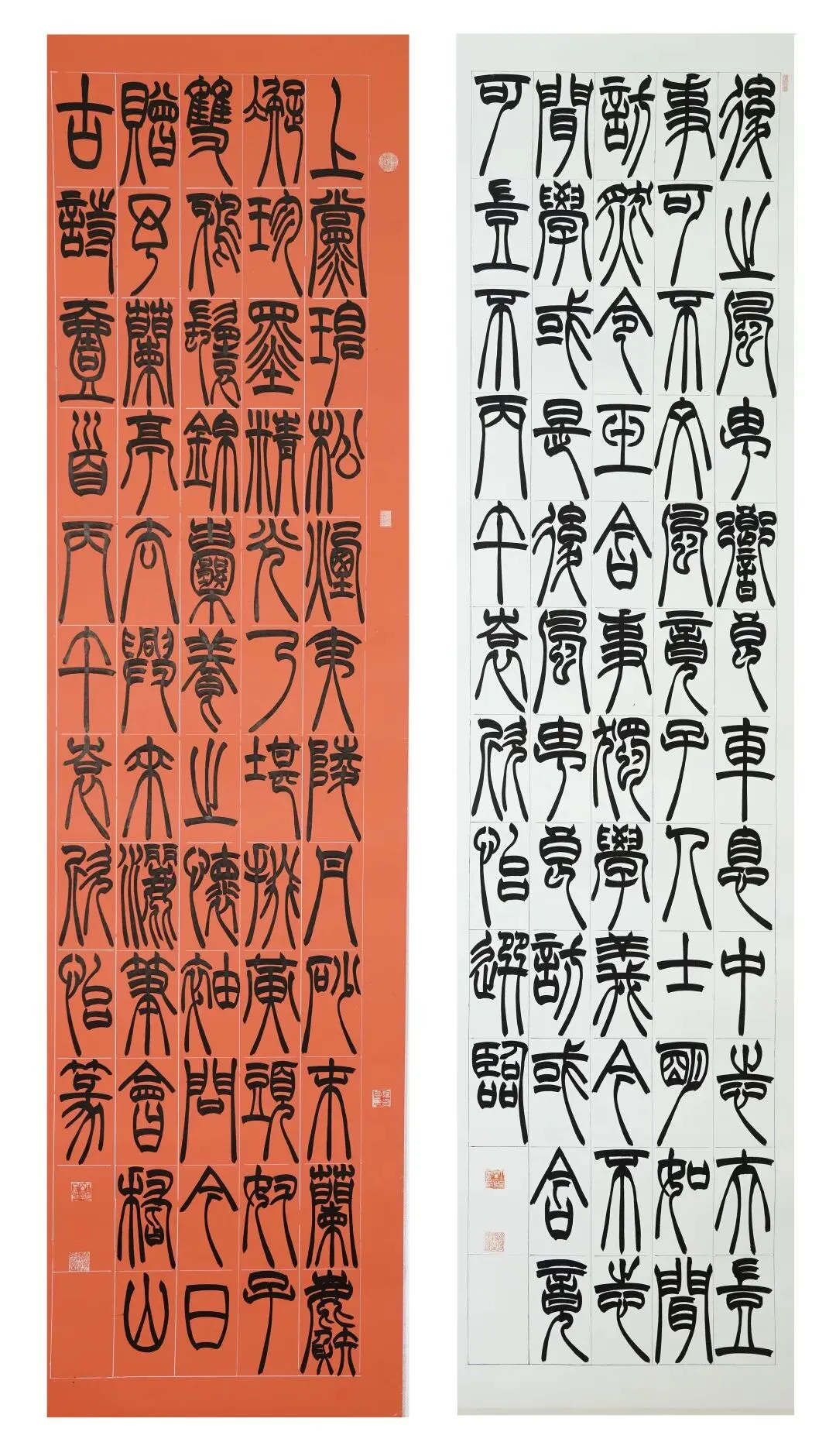 作品:临《毛公鼎节选》 创《绿柳龙腾联》