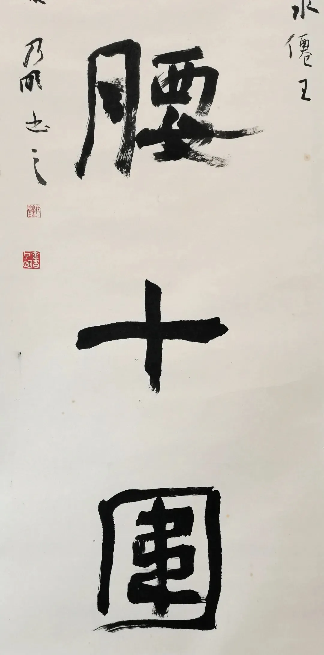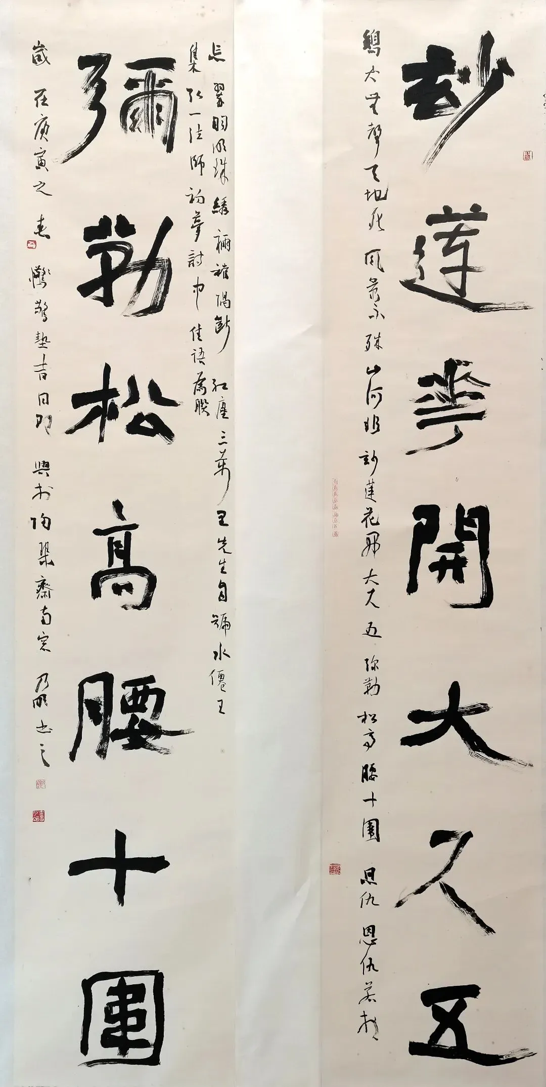 这幅大对联,就是刘乃明兄当时的展览作品,记得展览期间,此作得到李远东院长的高度赞赏,频频与同道们于此作前指点、交流!