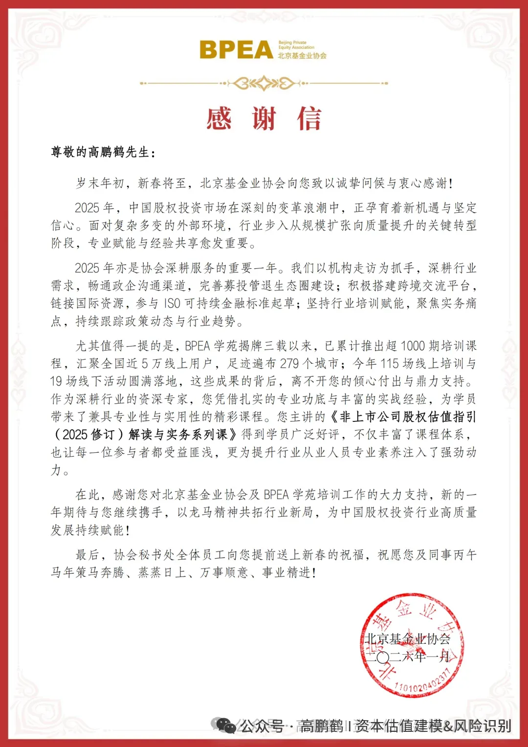 高鹏鹤老师主讲课程包括《股权投资估值建模手把手实操演练训练营》《非上市公司股权估值指引——解读与实务、案例与DCF建模演练》、《DCF估值模型实操》、《股权投资第一性原理》、《市值管理与估值逻辑》、《》玩转资本魔方——企业IPO前筹划与上市后规范运作》等,培训客户覆盖多家创投机构、券商、评估事务所与上市公司财务团队。