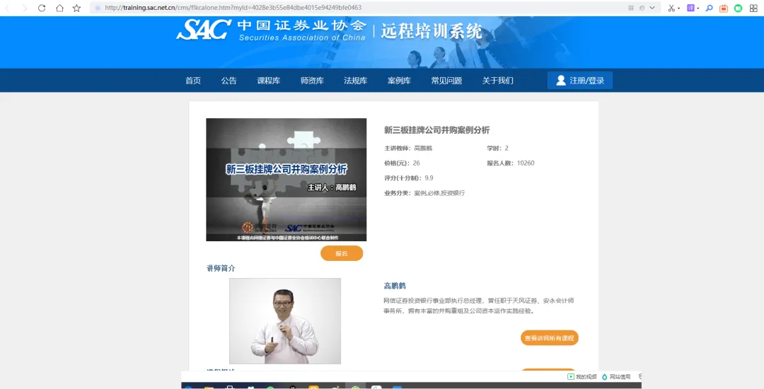 <二>中国证券业协会特约培训课程(证券公司研究、投行、自营、资管、固收业务骨干培训)