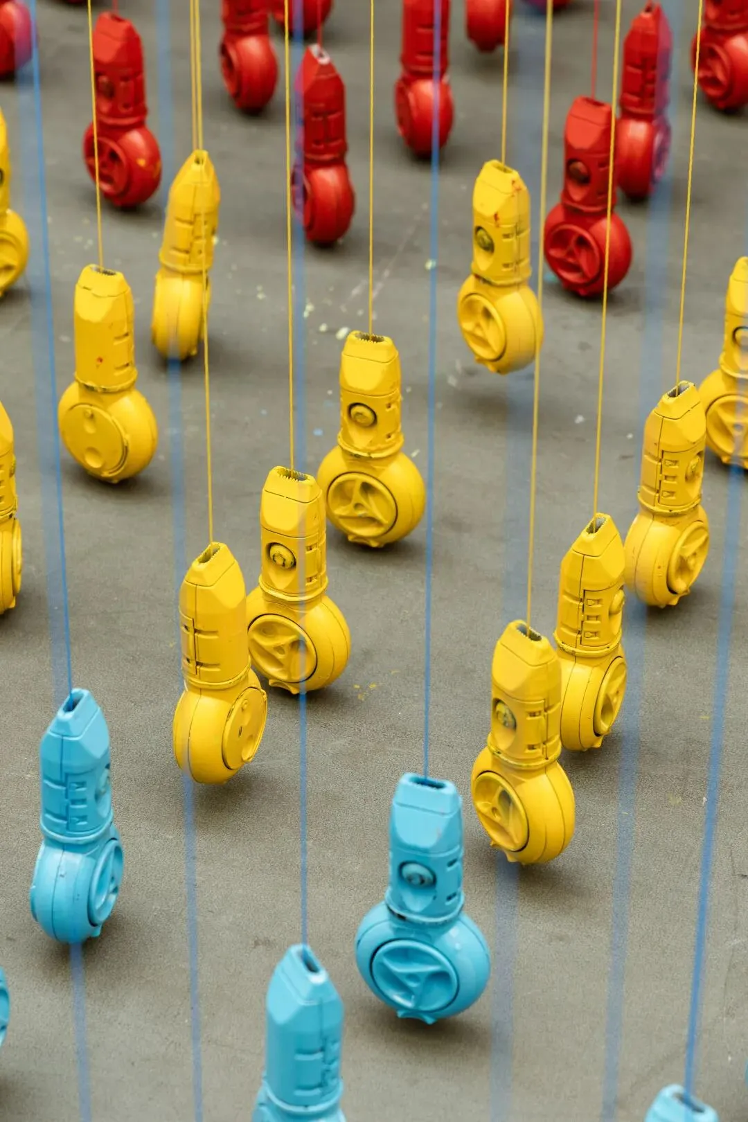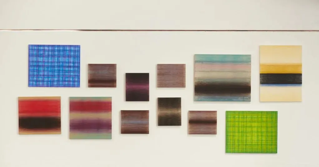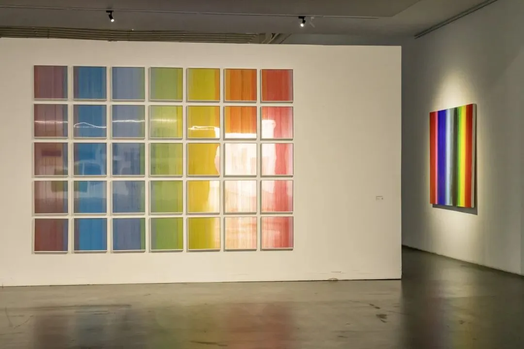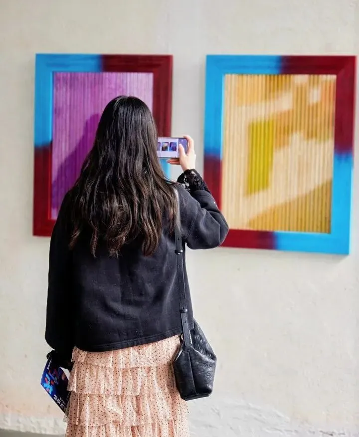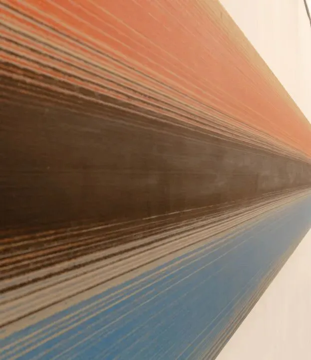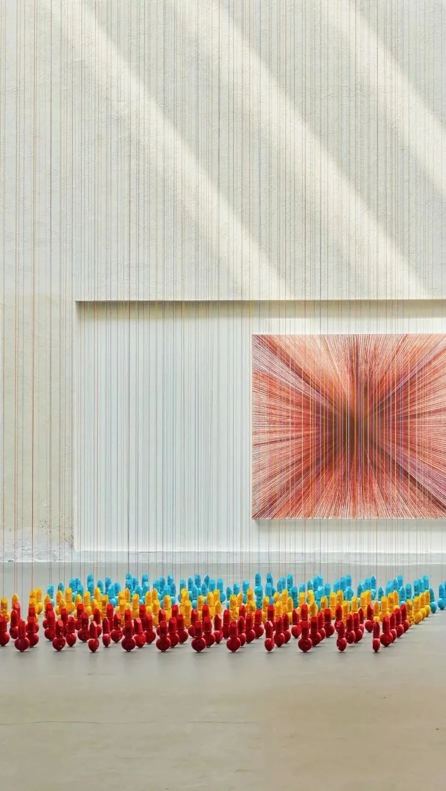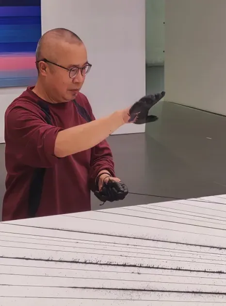 杨坚的作品并非机械的重复。策展人多多在访谈中提到:“每一次弹线,都包含着控制与不可控的瞬间。你以为是在测量空间,其实也是在和偶然较劲。”