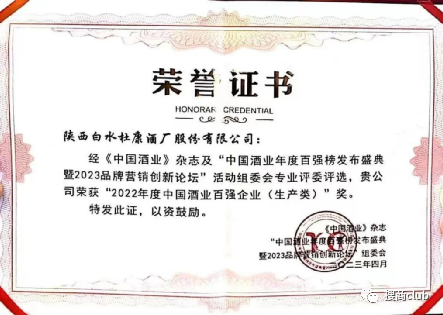 来自行业的认可,是对白水杜康实力的肯定,更是对其品牌发展创新的赞同。近期,“中国酒业年度百强榜发布盛典暨2023品牌营销创新论坛”在成都成功举办。陕西杜康酒业集团有限公司凭借着创新引领、匠心传承荣登中国酒业百强榜(生产企业)。