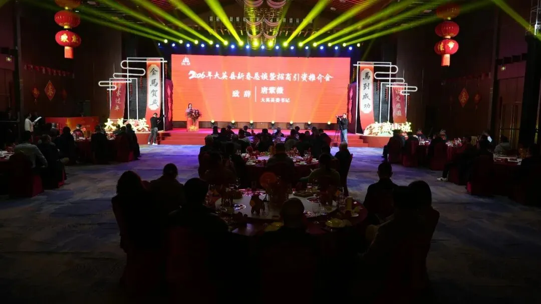 2月19日,农历正月初三,大英县2026年新春恳谈暨招商引资推介会举行。活动邀请大英籍优秀返乡企业家、在外成功人士及社会各界人士代表共贺新春佳节、共话桑梓情谊、共商发展大计、共绘美好蓝图。县委书记唐紫薇出席会议并致辞,县委副书记、县长陈发友主持会议。县人大常委会主任文漳,县政协主席王海军,遂宁市中国死海旅游度假区党工委副书记、管委会主任王玉军,县委副书记田彬出席会议。