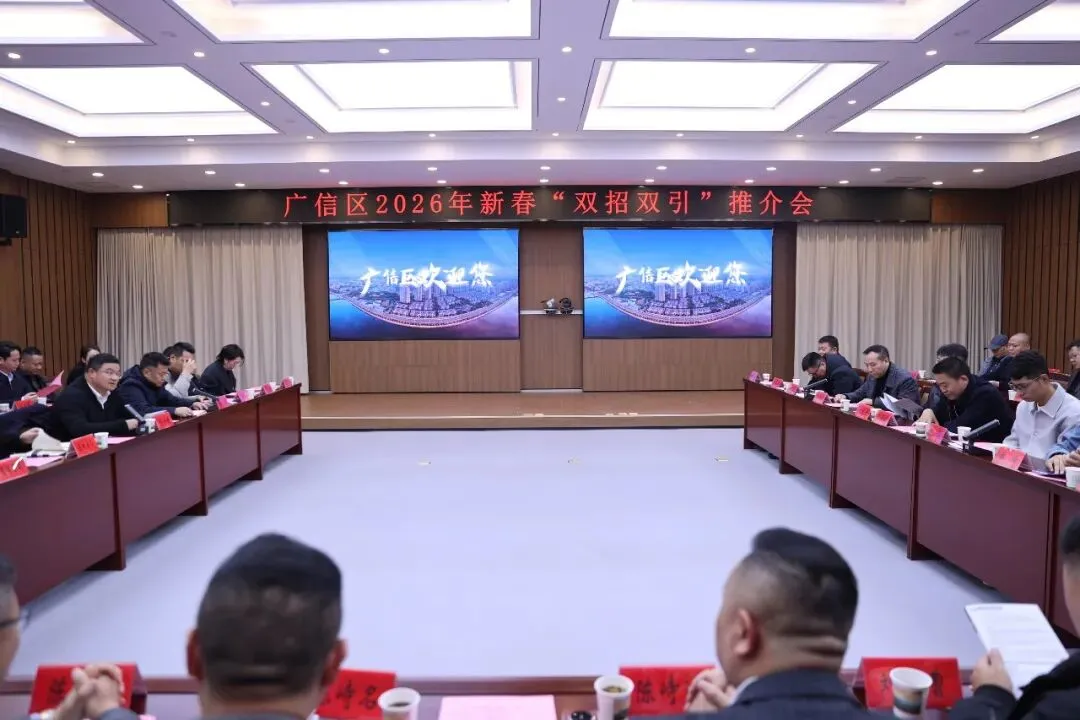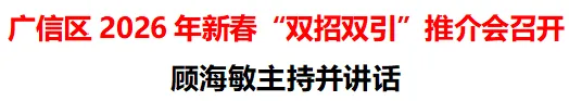 2月19日,农历正月初三,区委副书记、区长顾海敏主持召开广信区2026年新春“双招双引”推介会,区委常委、副区长周清参加。