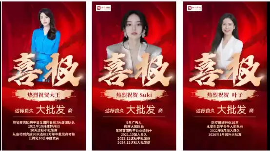 平台采用零门槛、免投资的加盟模式,代理通过建群销售赚取产品差价,并享有“品牌折扣费用”作为团队激励。
