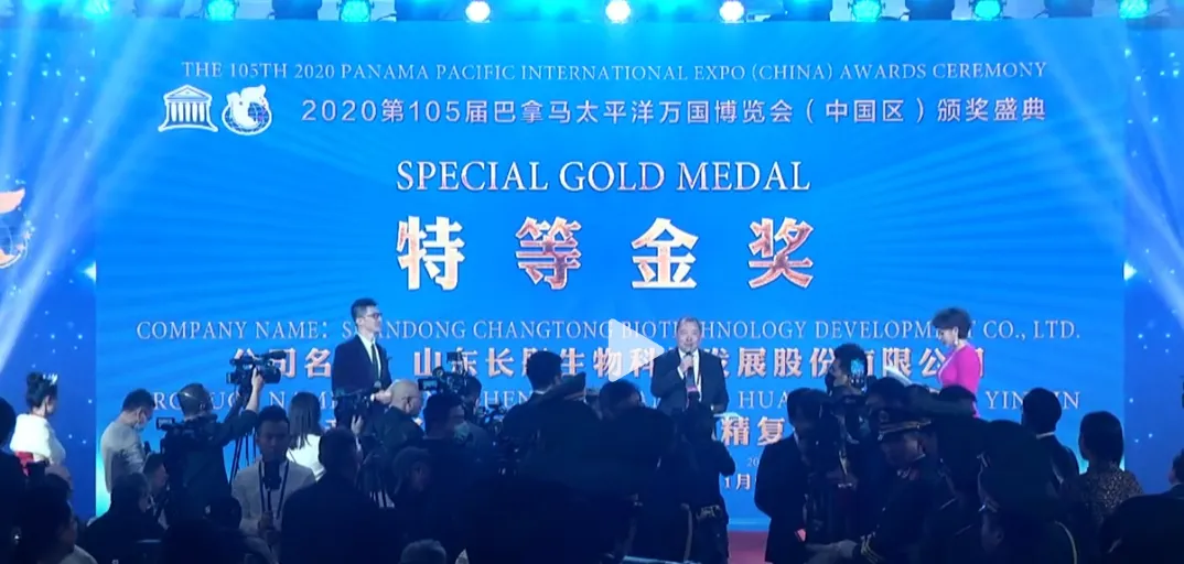 2020年11月,第105届国际巴拿马太平洋国际博览会在北京隆重举行,来自全国的300多名企业家共襄盛举。山东中健长生露旗下核心产品“长生露”凭借卓越的抗衰老功效和科技创新,荣获中国区“特等金奖”。