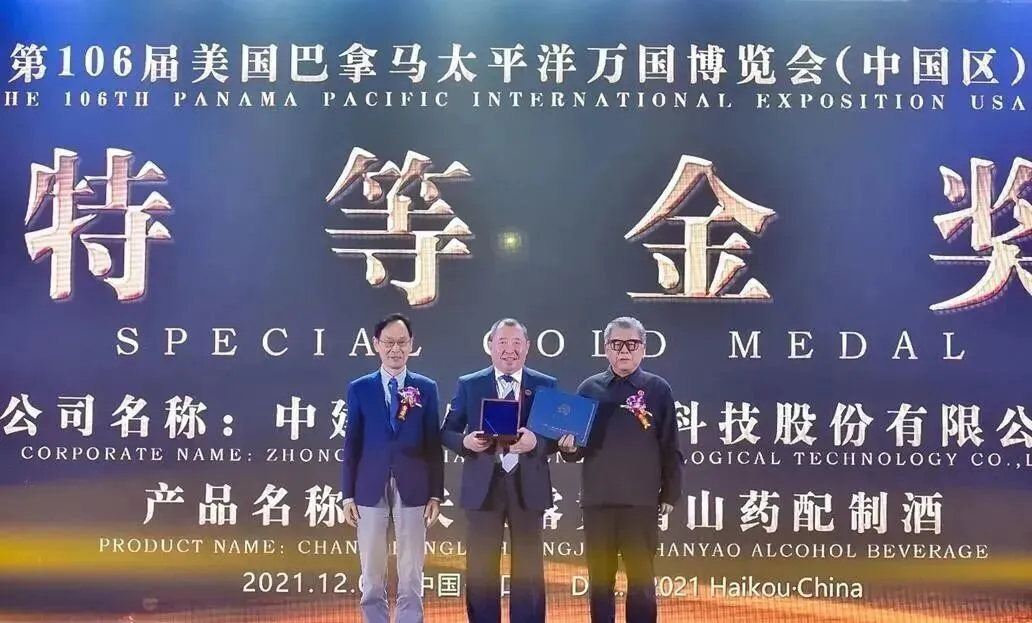 时隔一年,2021年12月,在海南海口举办的第 106 届国际博览会上,”长生露黄精山药配制酒”再度摘得“特等金奖”,成为国际巴拿马万国博览会上备受瞩目的“双冠王”。