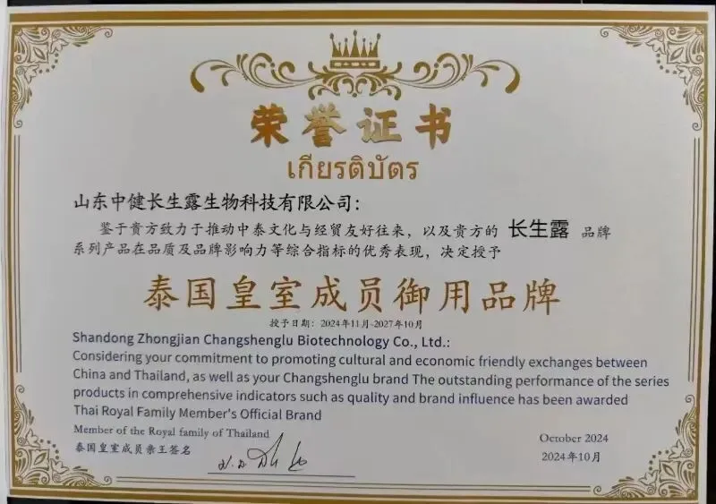 在泰国全力发展医疗旅游的背景下,中国山东的中健长生露其核心产品“长生露”系列作为抗衰老领域的标杆品牌,不仅以“山药黄精复合饮品”等创新产品引领行业,更凭借卓越品质通过泰国皇室御用品牌的严苛审核,成为极少数获此认证的国际品牌之一。据悉,泰国皇室御用品牌审核体系对产品品质、安全性、品牌影响力等综合指标要求极高,“长生露”的入选,标志着其在抗衰老领域的权威性获得极大认可。