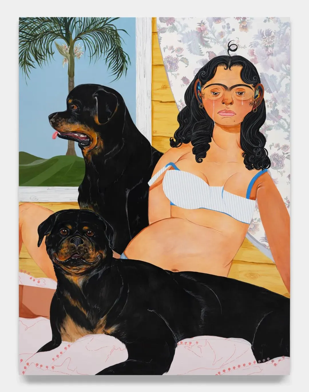 Dominican Republic–born artist Bony Ramirez with his bold compositions and visceral imagery, offers a profound reimagining of postcolonial Caribbean culture and tourism. The visual lexicon of these artists departs from consumer society, mystical experience, religion, and tradition, offering further gloaming meditations on intimacy.