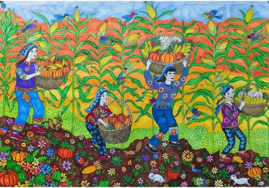 ▲赵媛媛《头巾下的丰收季》 甘肃
