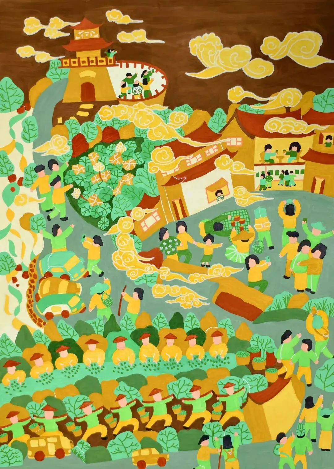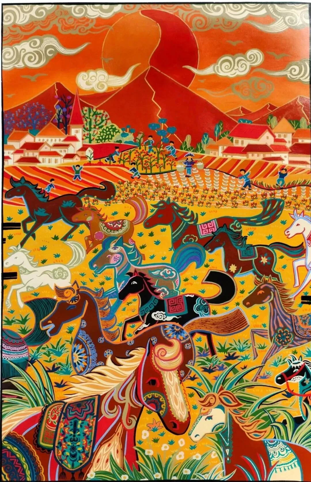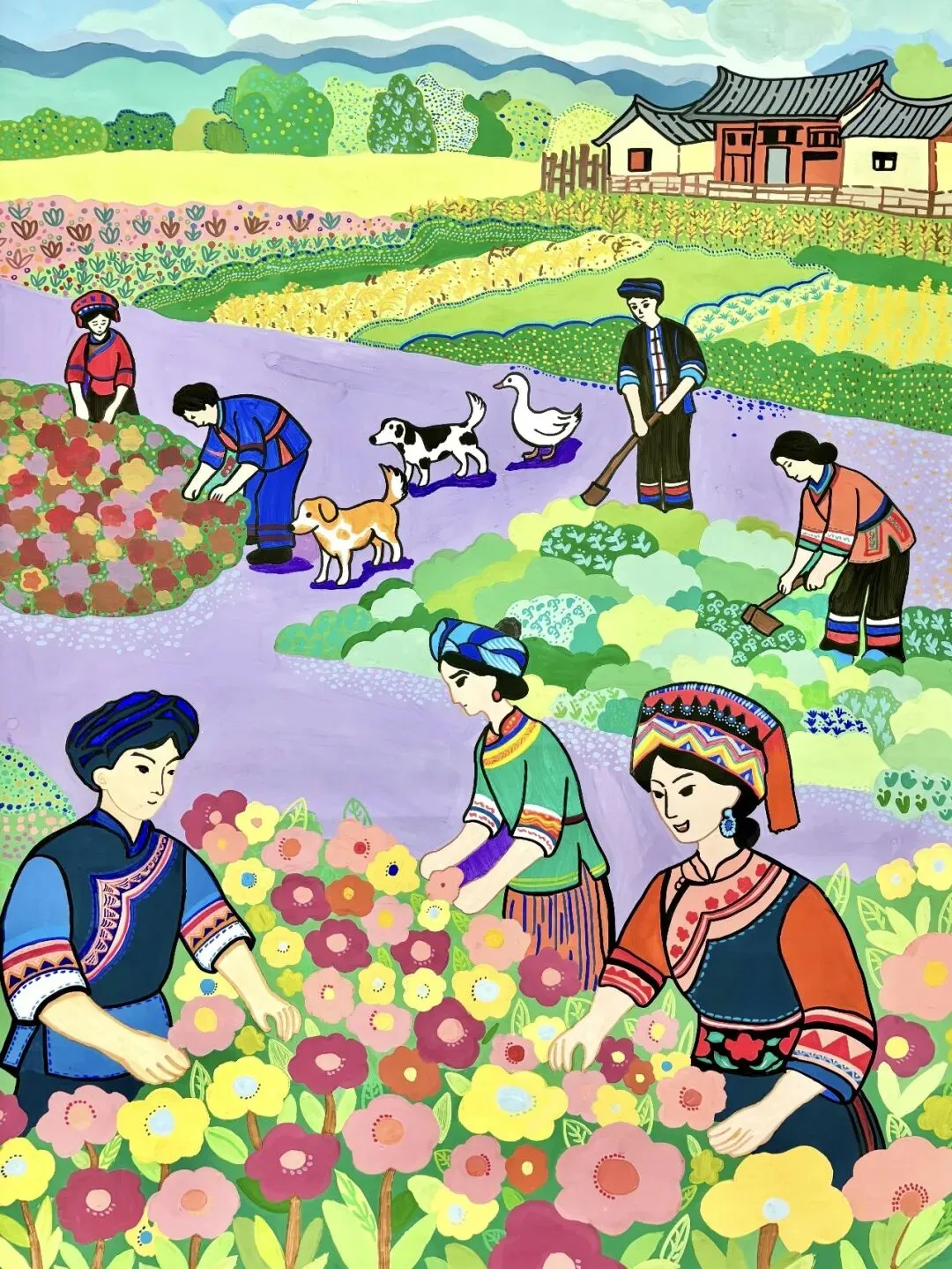 春归沃野,墨润乡心,年味浸丹青,匠心暖山河。“丹心绘村景·日子美扎了”欢乐中国年全国农民画展,携一缕乡土诗意赴新春之约,一纸征稿汇八方赤诚,全国农民画创作者以笔为媒、以色为语,将对故土的眷恋、生活的热忱与新春的期许,凝于尺幅之间。遴选而出的每一幅作品,皆是烟火人间的温柔描摹,藏着乡村的烟火与欢喜,载着最朴素的美好与真挚的祈愿。