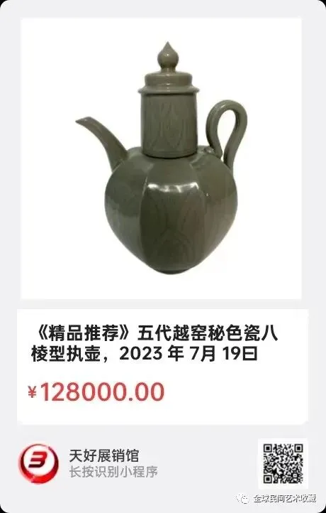 五代越窑秘色瓷八棱型执壶,唐,五代,高约29公分,宽约20公分。2023 年 7月 19曰,经天好评审团评审,以6票优势荣登精品榜,获第九十期天好海选精品。来源1318.V.