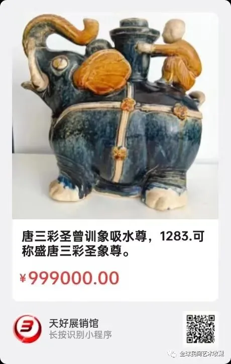 唐三彩圣曾训象吸水尊,高26厘米长26厘米宽14厘米2800㎏,可称盛唐三彩圣象尊,来源1283.