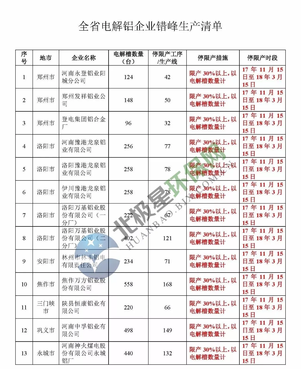 1. 13家电解铝企业分别限产30%以上,以电解槽数量计,采取现场督查抽查核实。