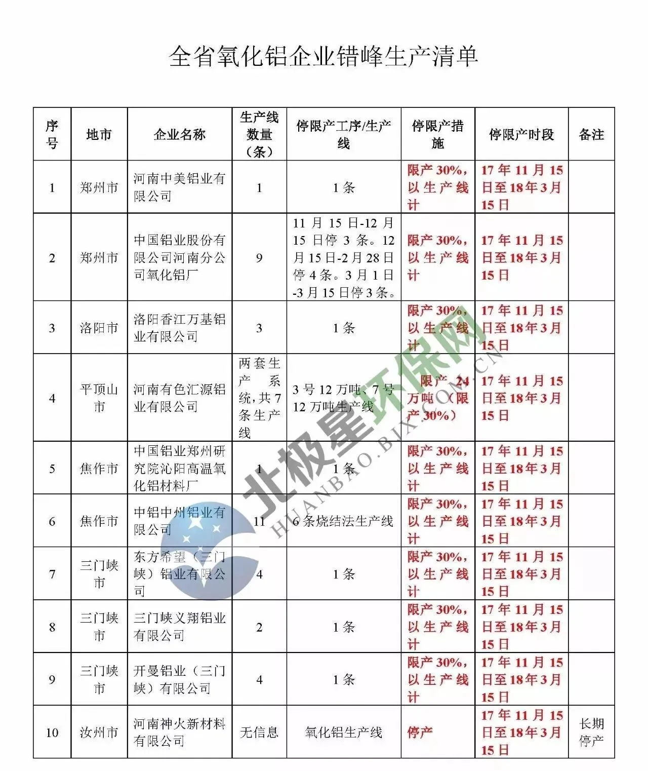 2. 10家氧化铝企业分别限产30%,以生产线计,采取现场督查抽查核实。