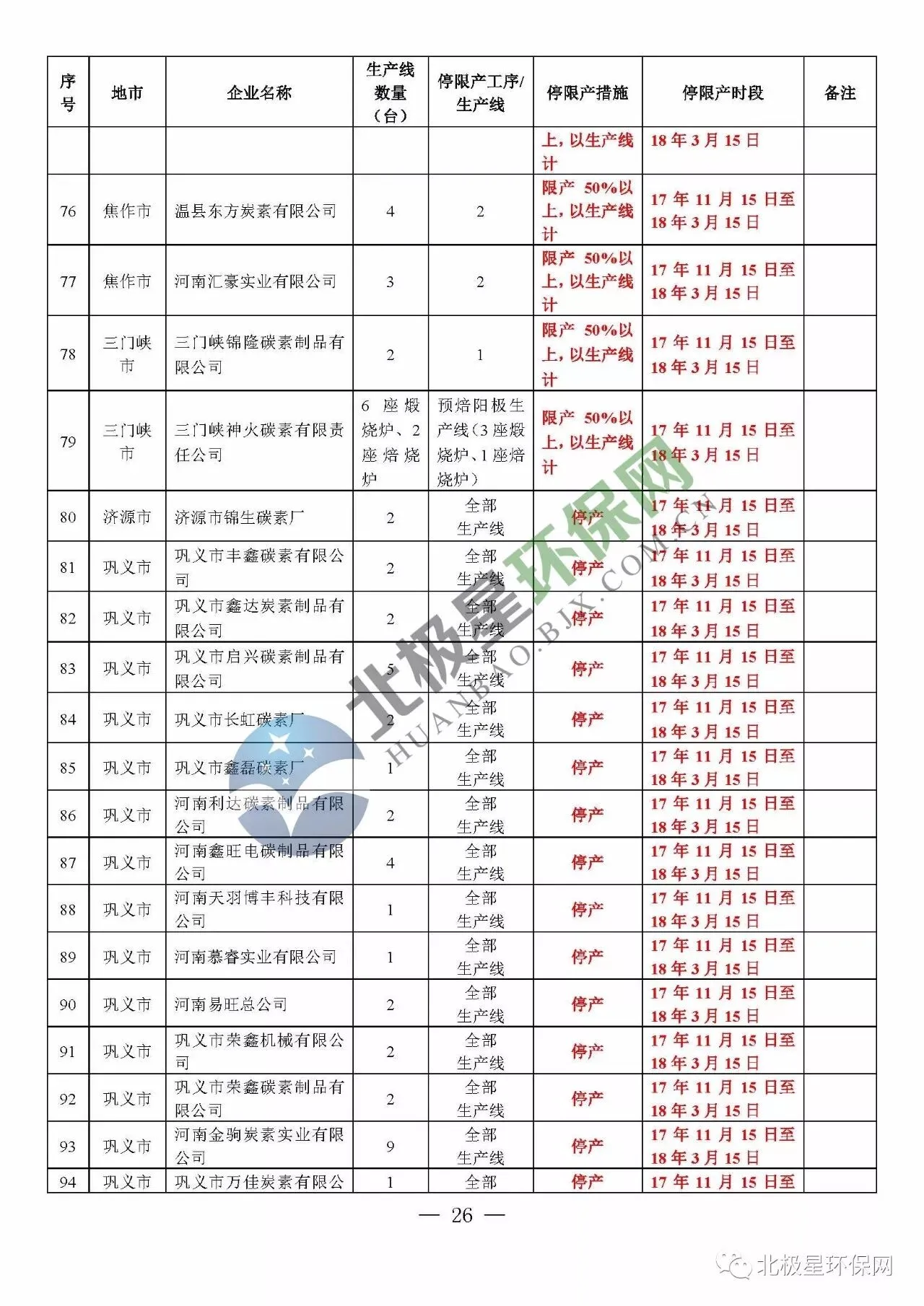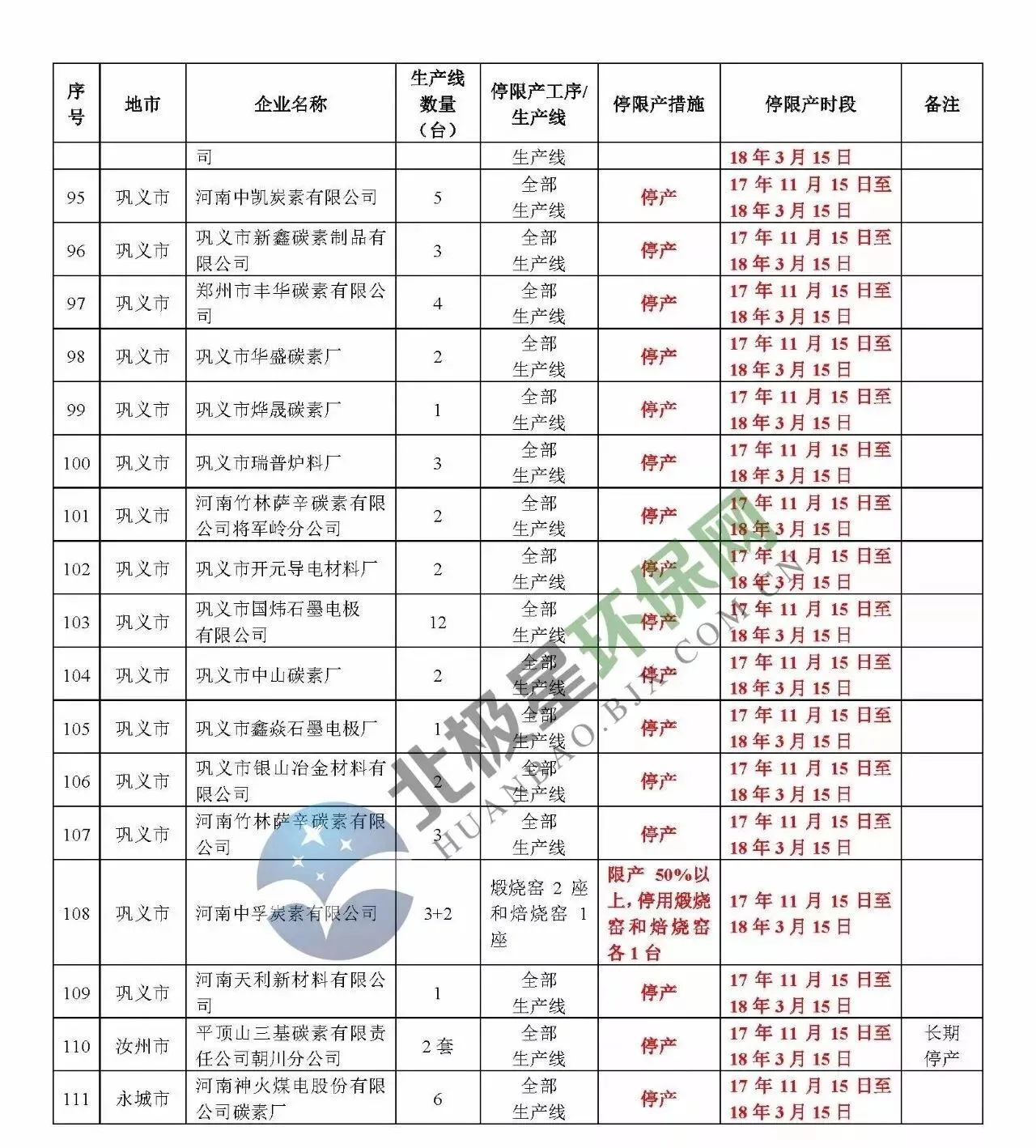 12. 炭素:全省111家炭素企业停限产4个月!(2017年11月15日至2018年3月15日)