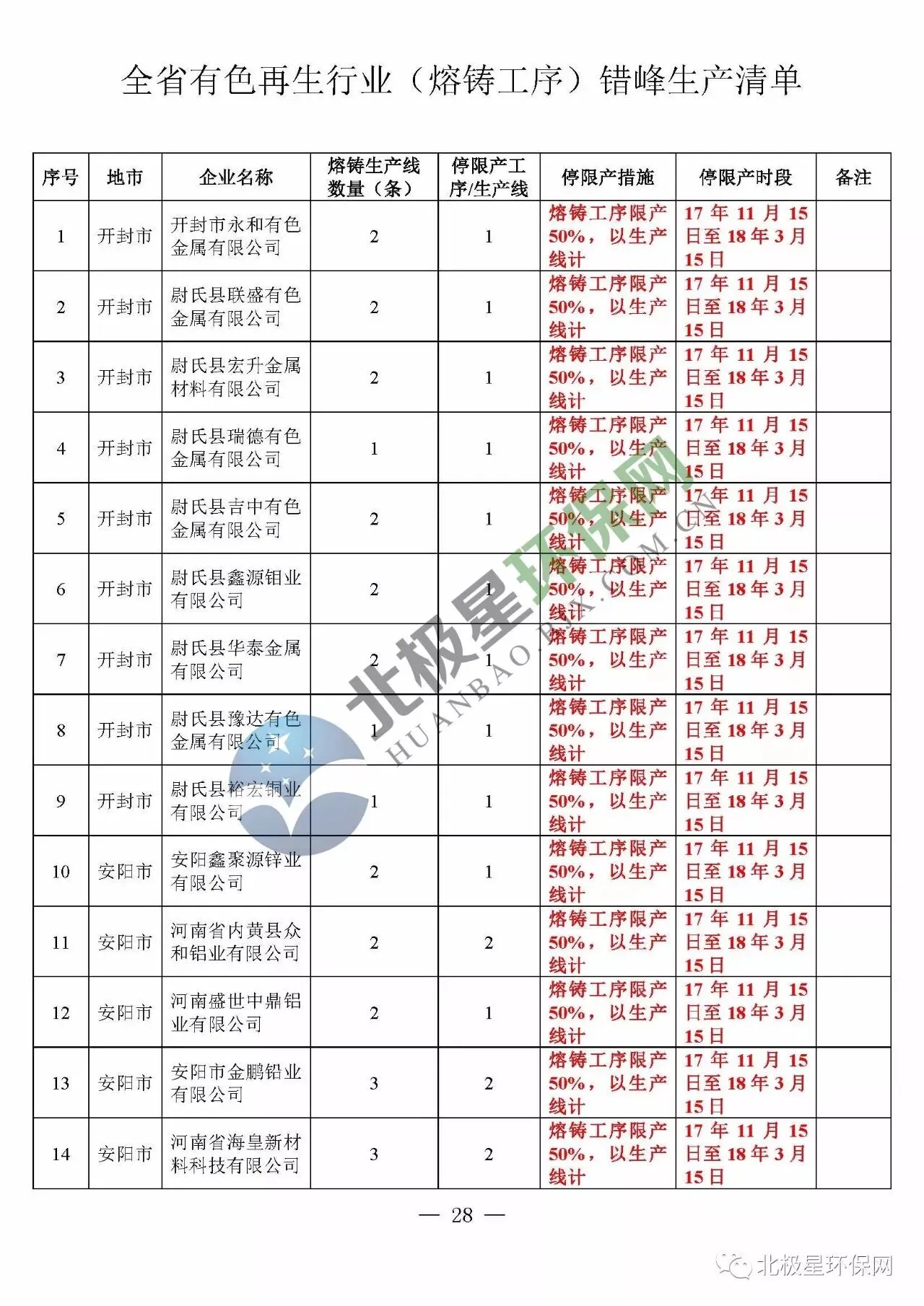 13. 有色再生行业:全省49家有色再生企业限产4个月!(2017年11月15日至2018年3月15日)