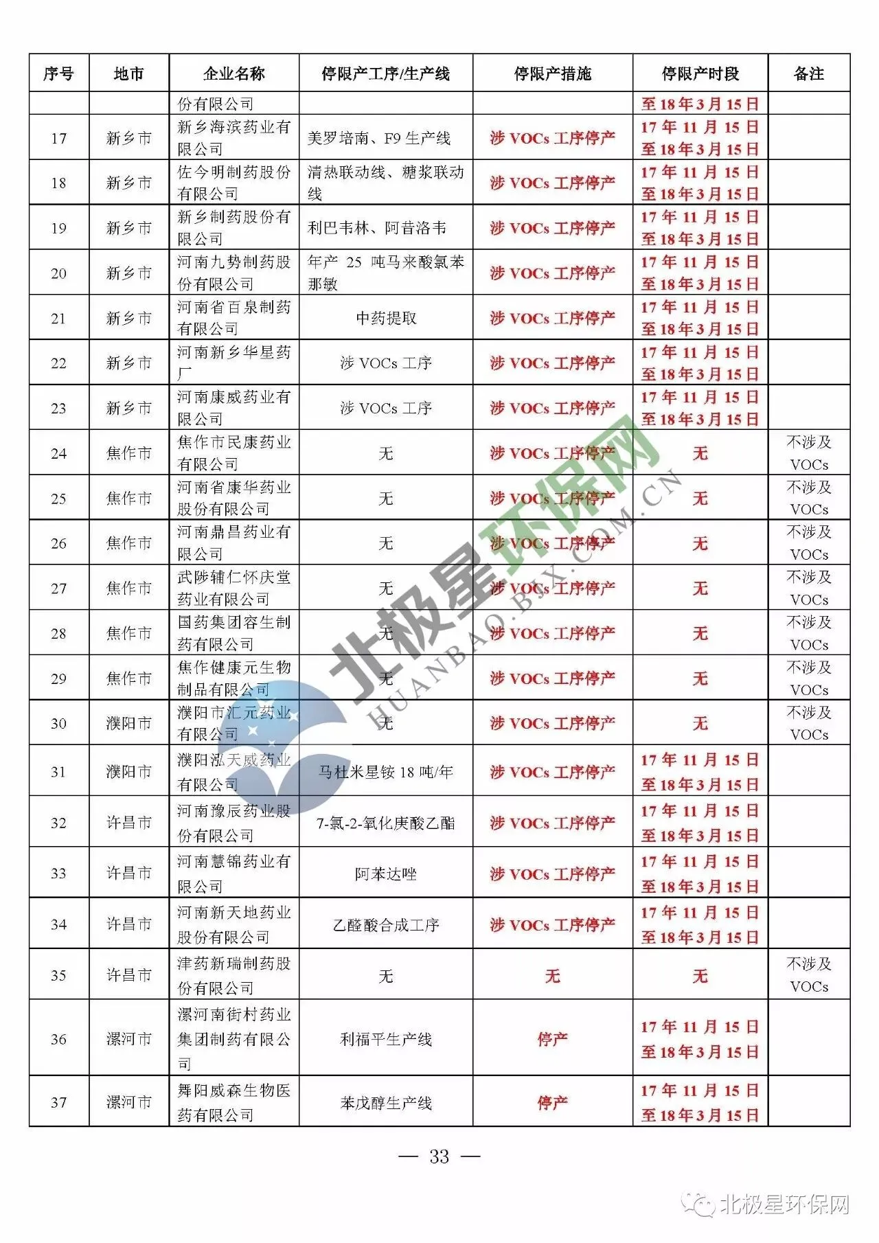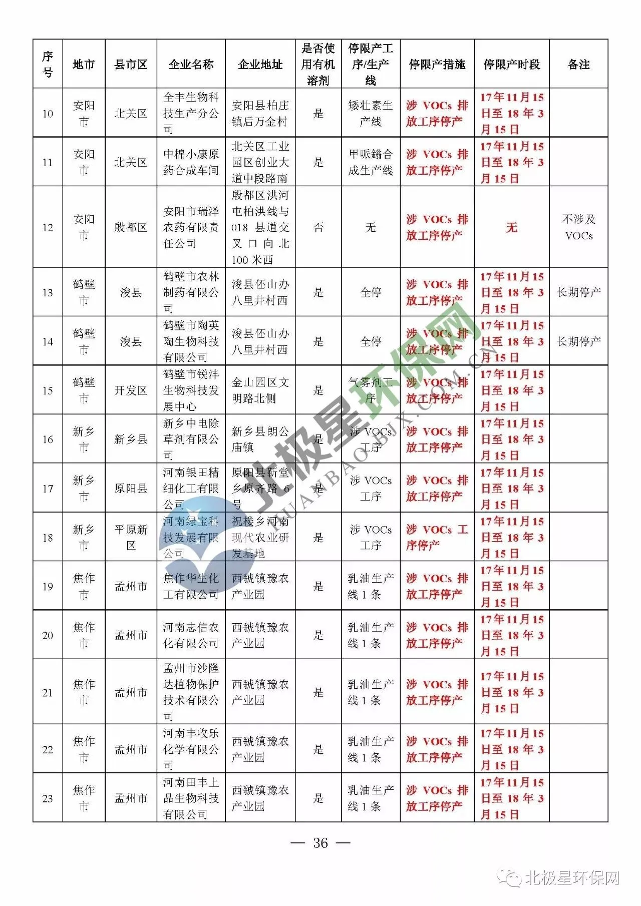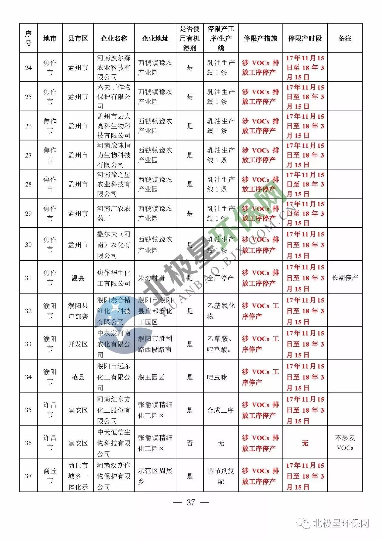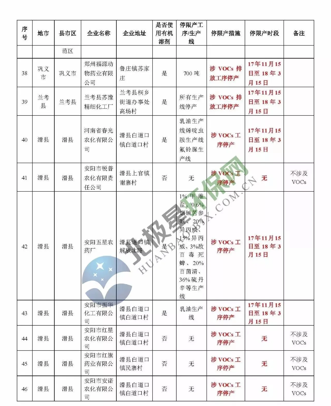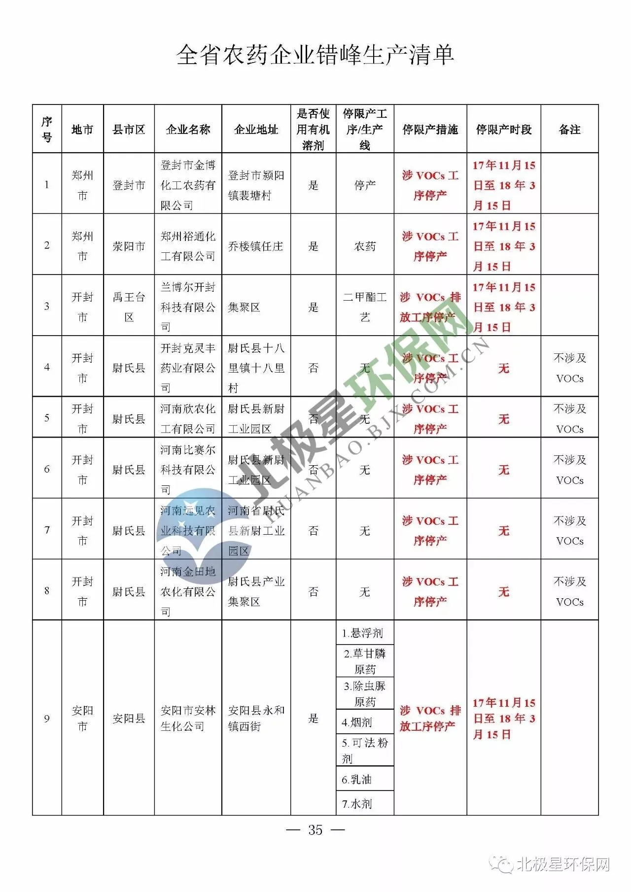15. 农药行业:全省35家农药企业涉VOCs工序停产4个月!(2017年11月15日至2018年3月15日)
