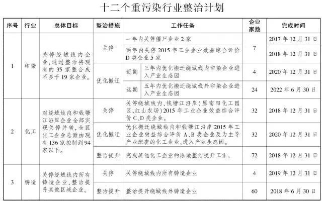 根据《杭州市萧山区工业“ 低、小、散” 整治提升工作实施意见》,十二个重污染行业分别是印染、化工、铸造、电镀、水泥、羽绒、混凝土、卫浴、工艺鞋、热电、化纤(聚酯)、再生纤维。