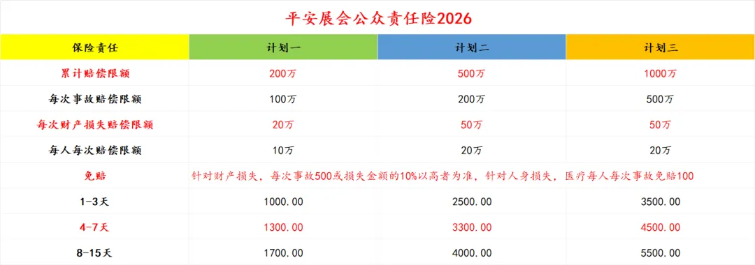 6、保单针对财产损失,每次事故免赔500或损失金额的10%,以高者为准针对人身损失,医疗每人每次事故免赔100