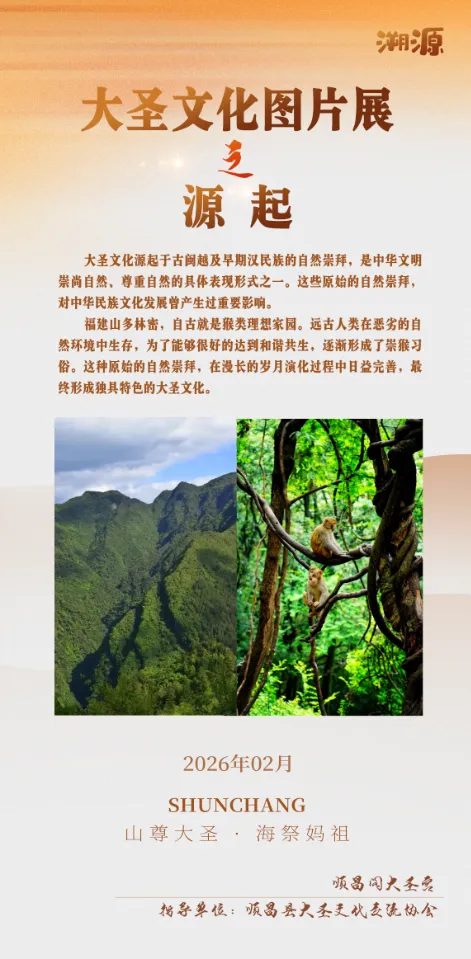 大圣文化源起于古闽越及早期汉民族的自然崇拜,是中华文明崇尚自然、尊重自然的具体表现形式之一。这些原始的自然崇拜,对中华民族文化发展曾产生过重要影响。