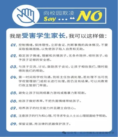预防“校园欺凌”,应做到“三不”,即:不做受害者、不做欺凌者、不做附和者或冷眼旁观者。