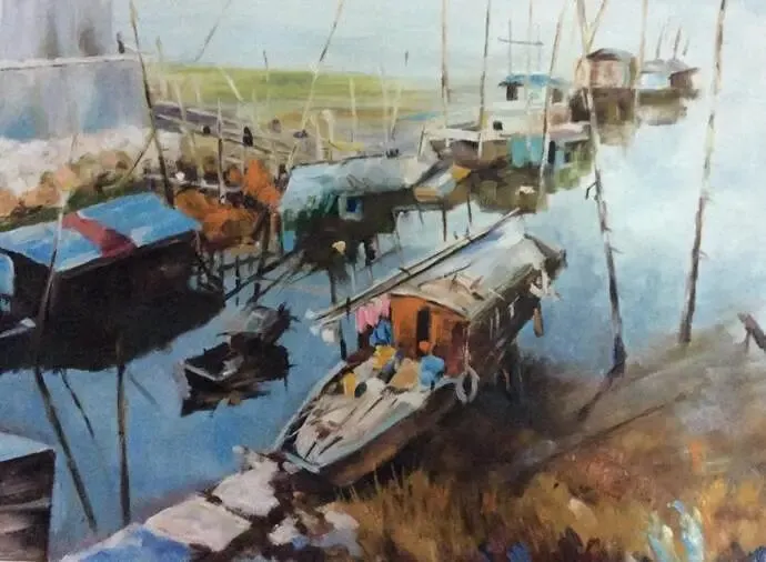 《湖洲古镇》-80cmx80cm-布面油画
