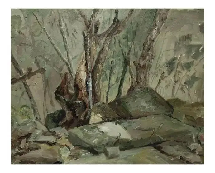 《石板缝中的植物》-50cm×60cm-布面油画