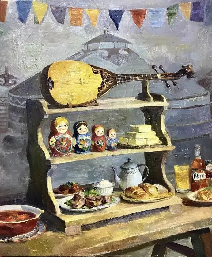 《羌歌浑炙图》-50cm×60cm-布面油画