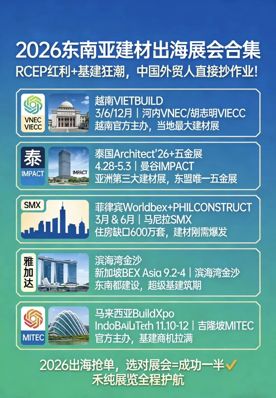 #东南亚展会 #2026展会 #建材出海 #外贸人 #RCEP #越南建材展 #泰国建材展 #印尼建材展