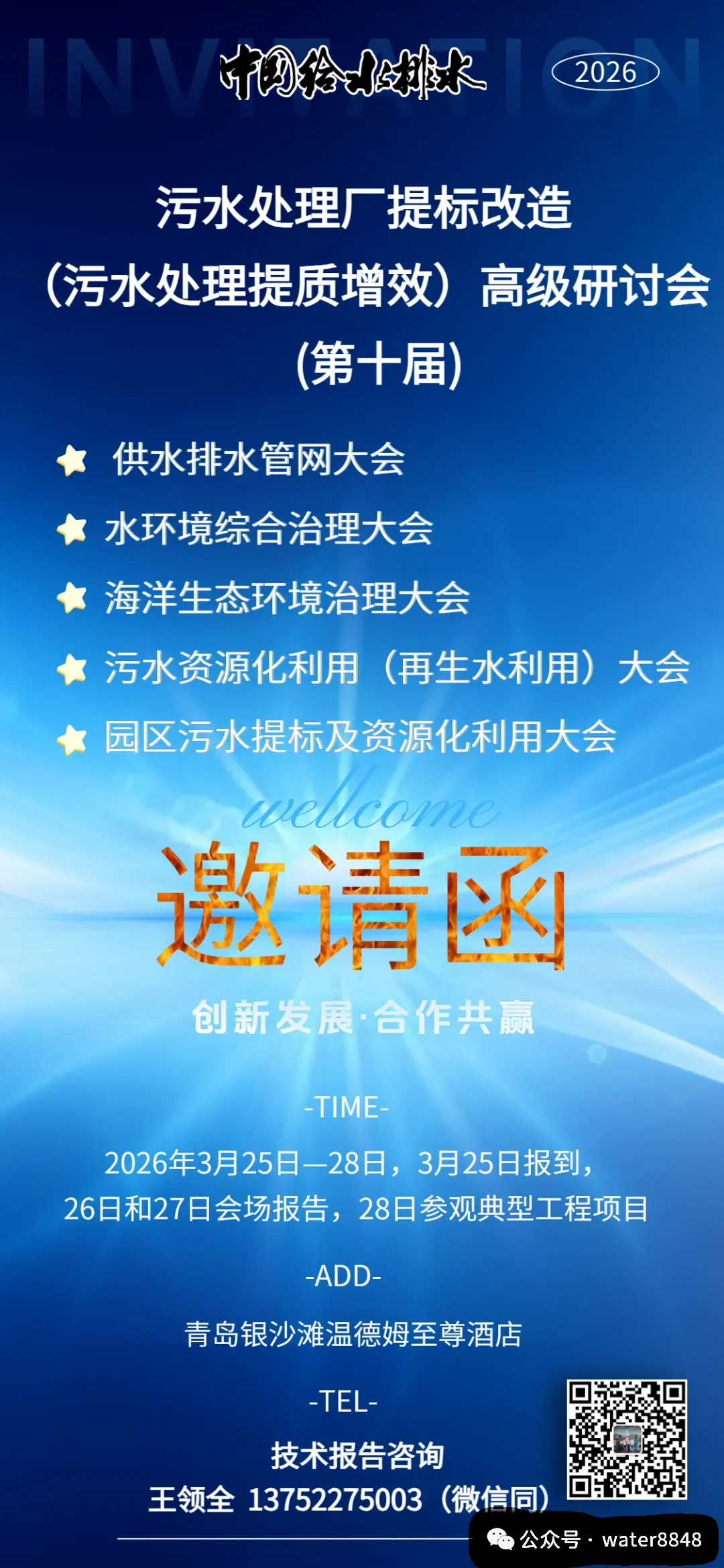 中国给水排水2026年污水处理厂提标改造(污水处理提质增效)高级研讨会(第十届)邀请函暨征稿启事
