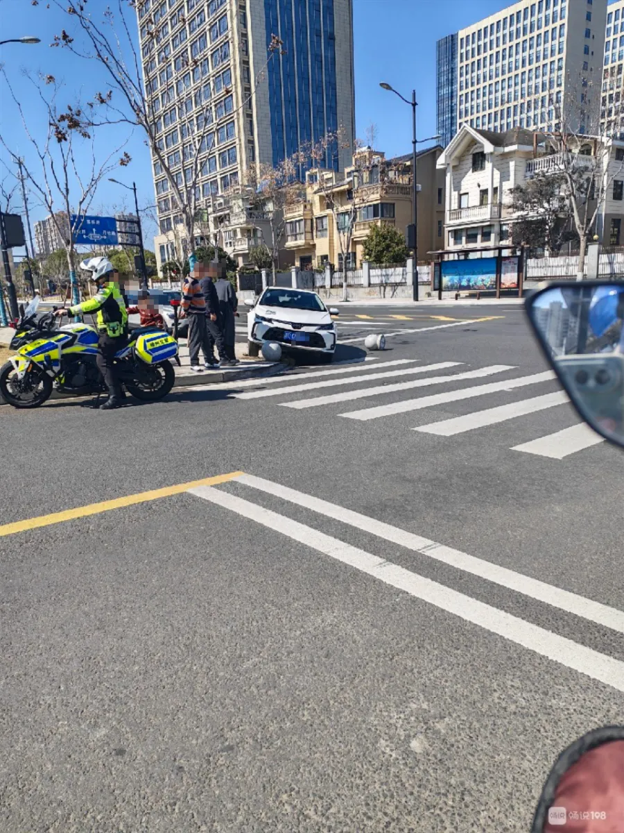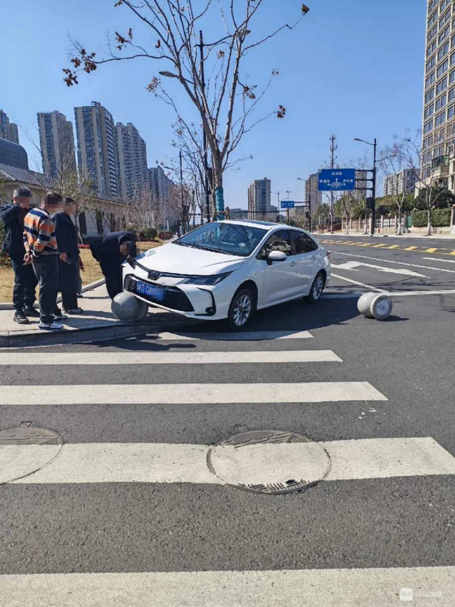 大过年的,嵊州国际会展中心北面,白色小轿车起飞失败,撞上石墩!人没事。