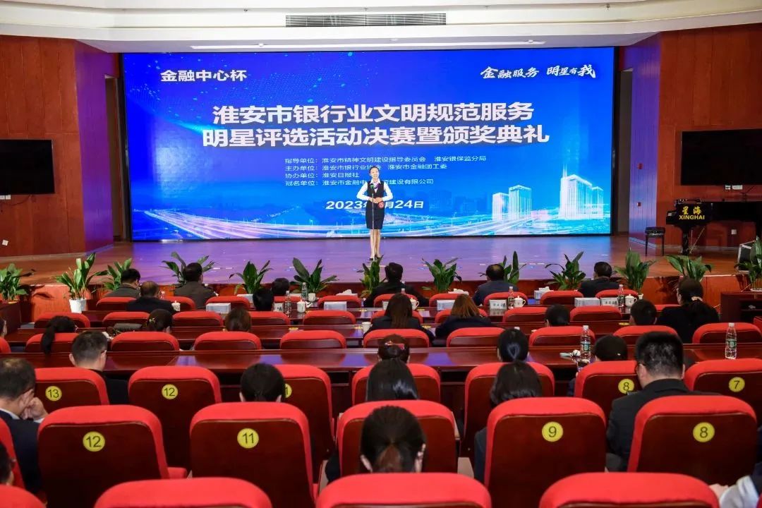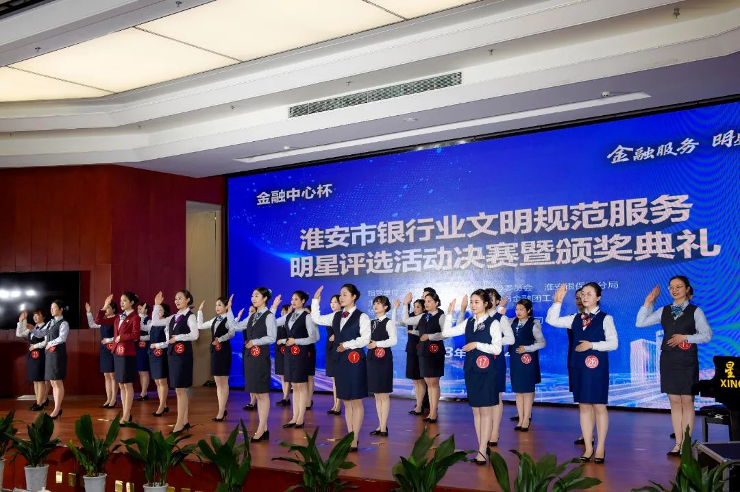 为全面贯彻学习二十大报告精神,坚定以服务人民为中心,在淮安市精神文明建设指导委员会办公室、淮安银保监分局指导下,淮安市银行业协会联合淮安市金融团工委举办了“淮安市银行业文明规范服务明星”评选活动。来自全市银行机构的83位在基层一线从事服务工作人员参加了本次评选活动。参赛选手经过了初赛的材料审核、网络投票、线上答题和复赛演讲,2023年4月24日,最终28位选手挺进决赛。