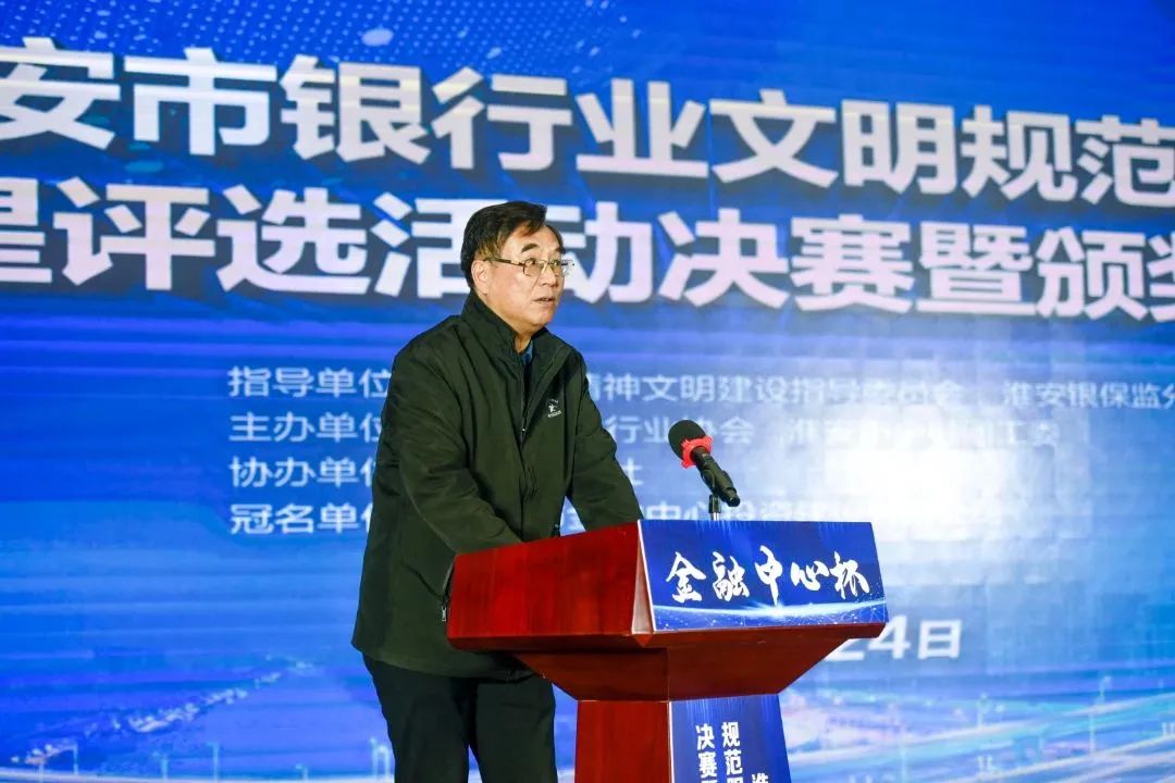 淮安银保监分局二级调研员谈政同志致辞。对各位选手及全市银行业从业人员提出要求:要在优质、高效、创新、温暖方面做文章,把全心全意为人民服务落在实处、做在细处,要关注行业服务热点,特别是一老一少、新市民等群体,维护金融消费者合法权益,要发挥标杆示范作用,以点带面,提炼服务文化,打造服务品牌,全面推动本网点、本单位服务水平的提升,要以服务促合规,以服务提业绩,以服务展形象,实现服务高质量发展,从而达到银行和客户的双赢。