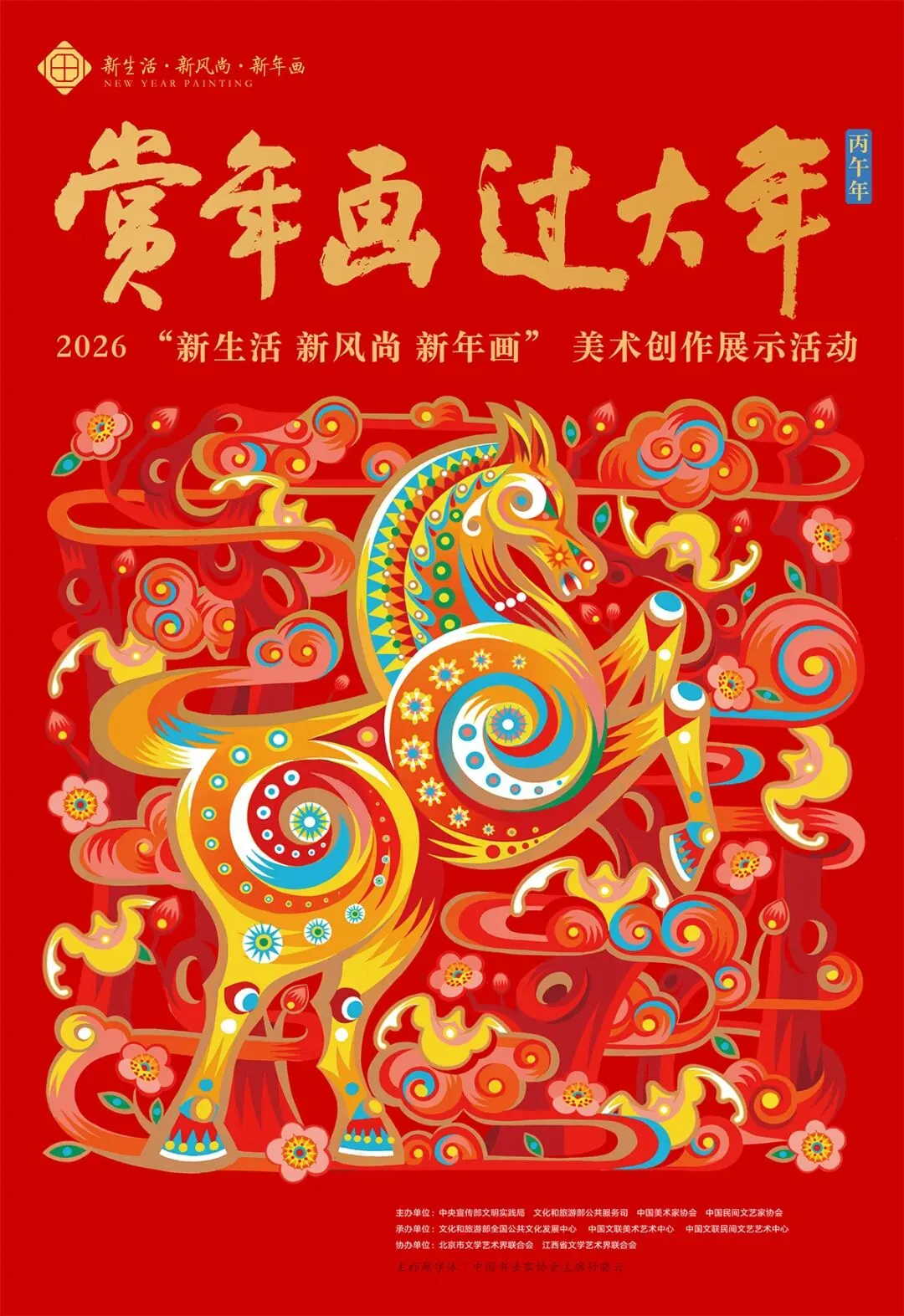 为深入学习贯彻党的二十届四中全会精神,传承弘扬中华优秀传统文化,丰富人民群众节日精神文化生活,激励广大群众振奋精气神、共创新生活,中央宣传部文明实践局、文化和旅游部公共服务司、中国美术家协会、中国民间文艺家协会联合举办了2026年“新生活·新风尚·新年画”美术创作展示活动。