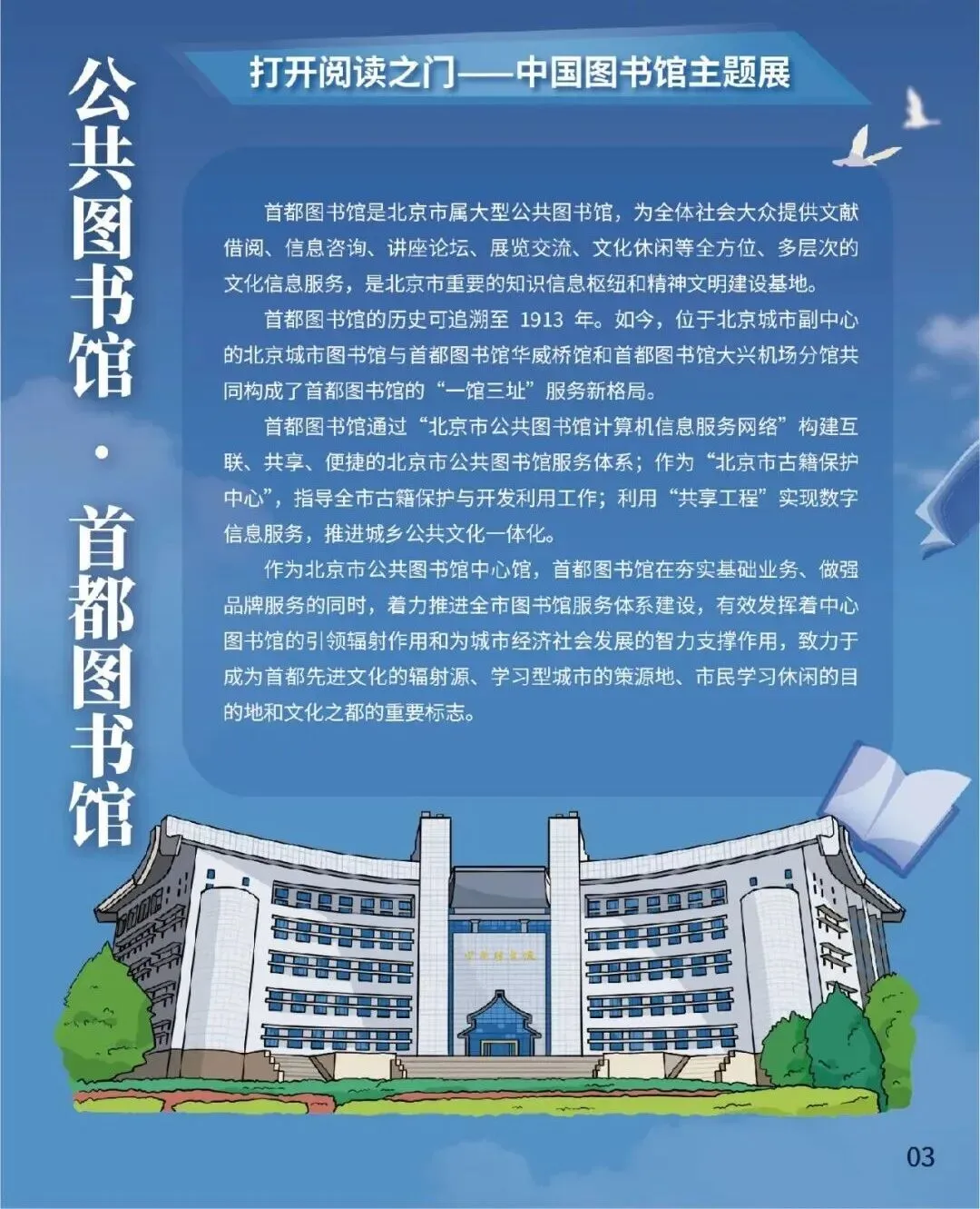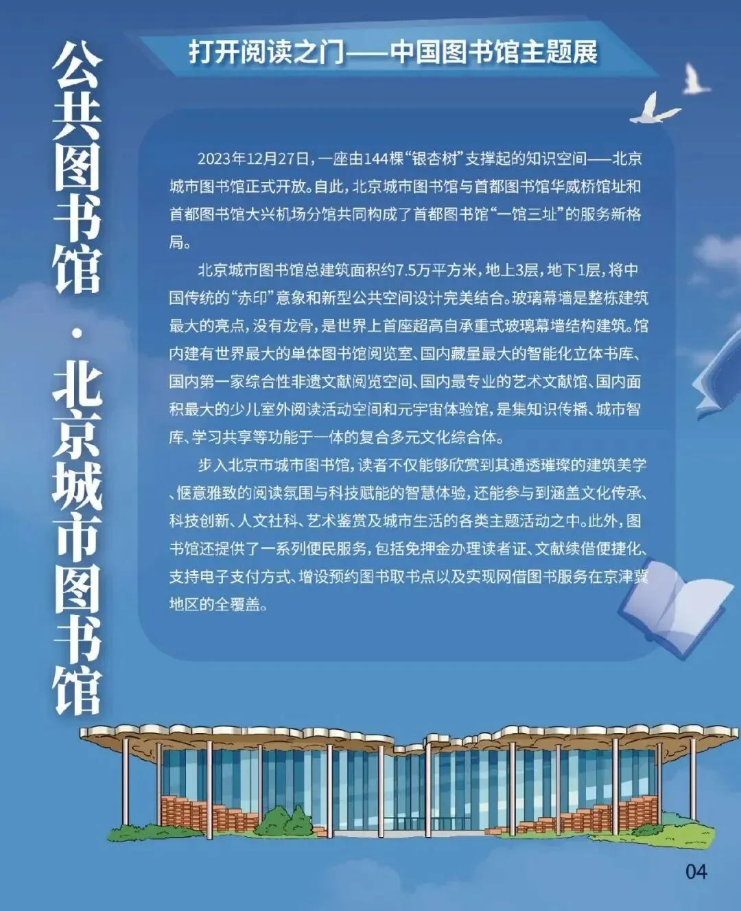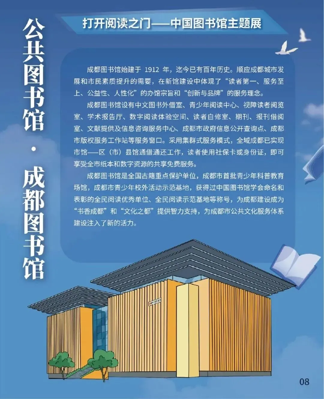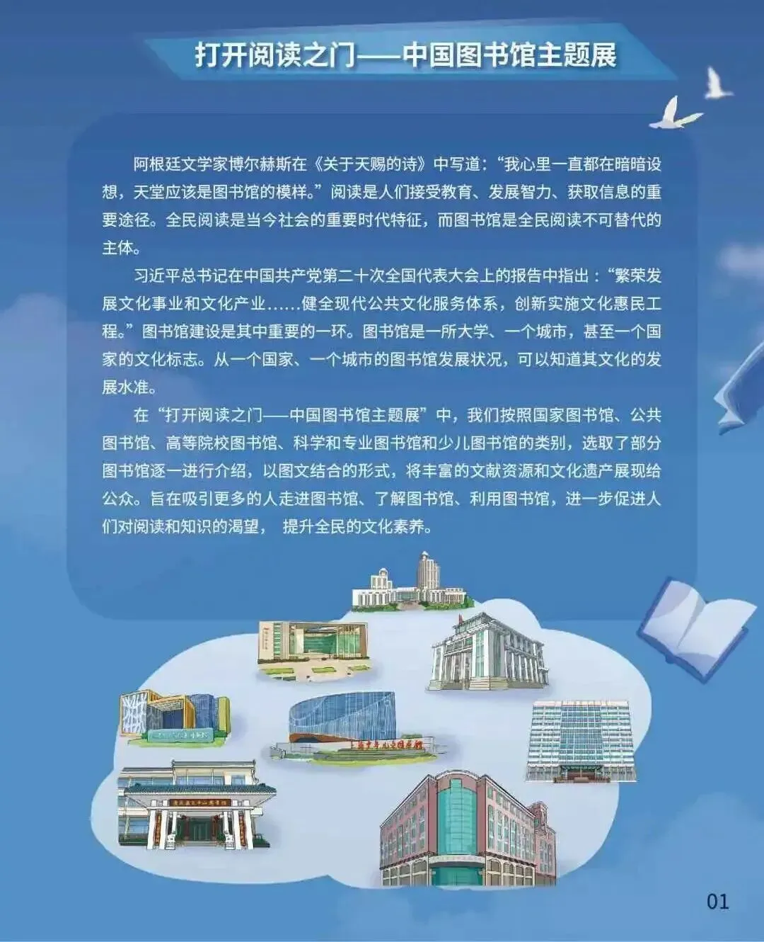 打开阅读之门——中国图书馆主题展将通过精美的手绘作品,生动地展示中国各地的图书馆建筑、藏书文化和阅读环境。观众可以欣赏到手绘作品中呈现的古老图书馆、现代化图书馆以及具有特色的专题馆,了解它们的建筑风格、图书收藏和阅读资源。使观众领略到图书馆作为知识殿堂和文化交流中心的重要地位。