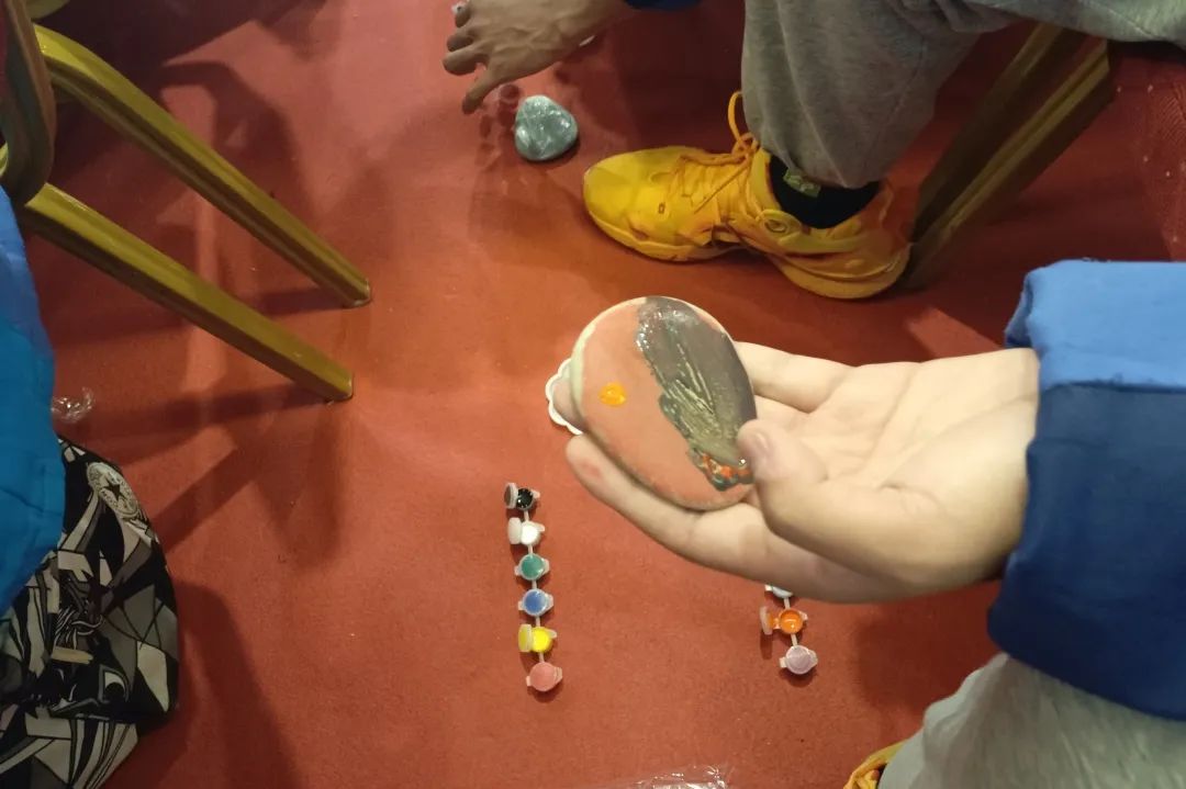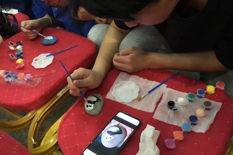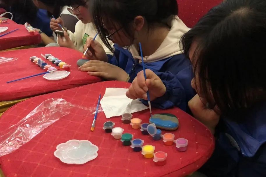 带队老师表示:小小的石头,大大的创意,多彩的颜料在石头上画龙点睛,不仅让学生感受了石头作品的美妙,还让学生体会到了大自然的奇特之处。并且在研学导师的耐心带领下,学生们在玩中做,做中玩,大胆创新,自由想象,多种能力得到了发展。学生们利用自己的智慧将大自然中的材料加以利用,变废为宝,让石头画成了一件艺术品。”