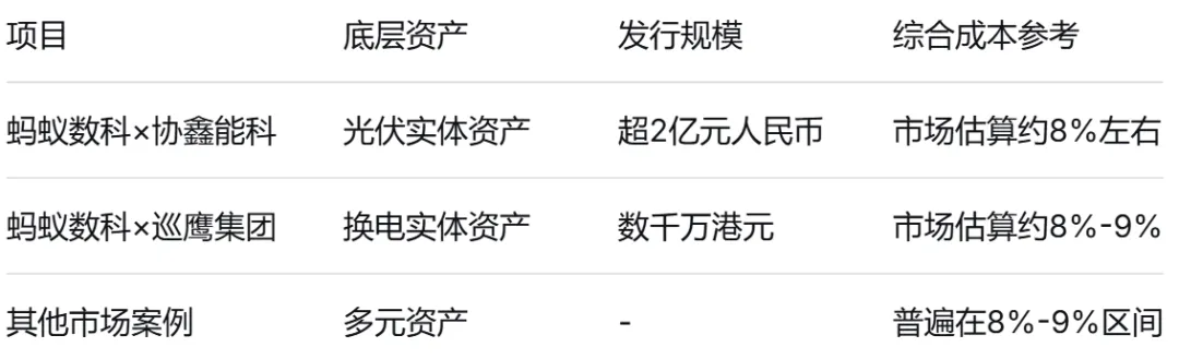 结合2025年已发行的RWA项目,综合成本普遍处于较高水平: