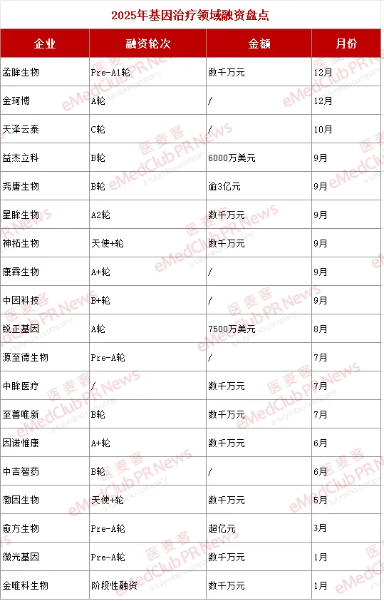 下面,小编对 2025 年国内基因治疗领域的公开融资事件进行梳理和分析。